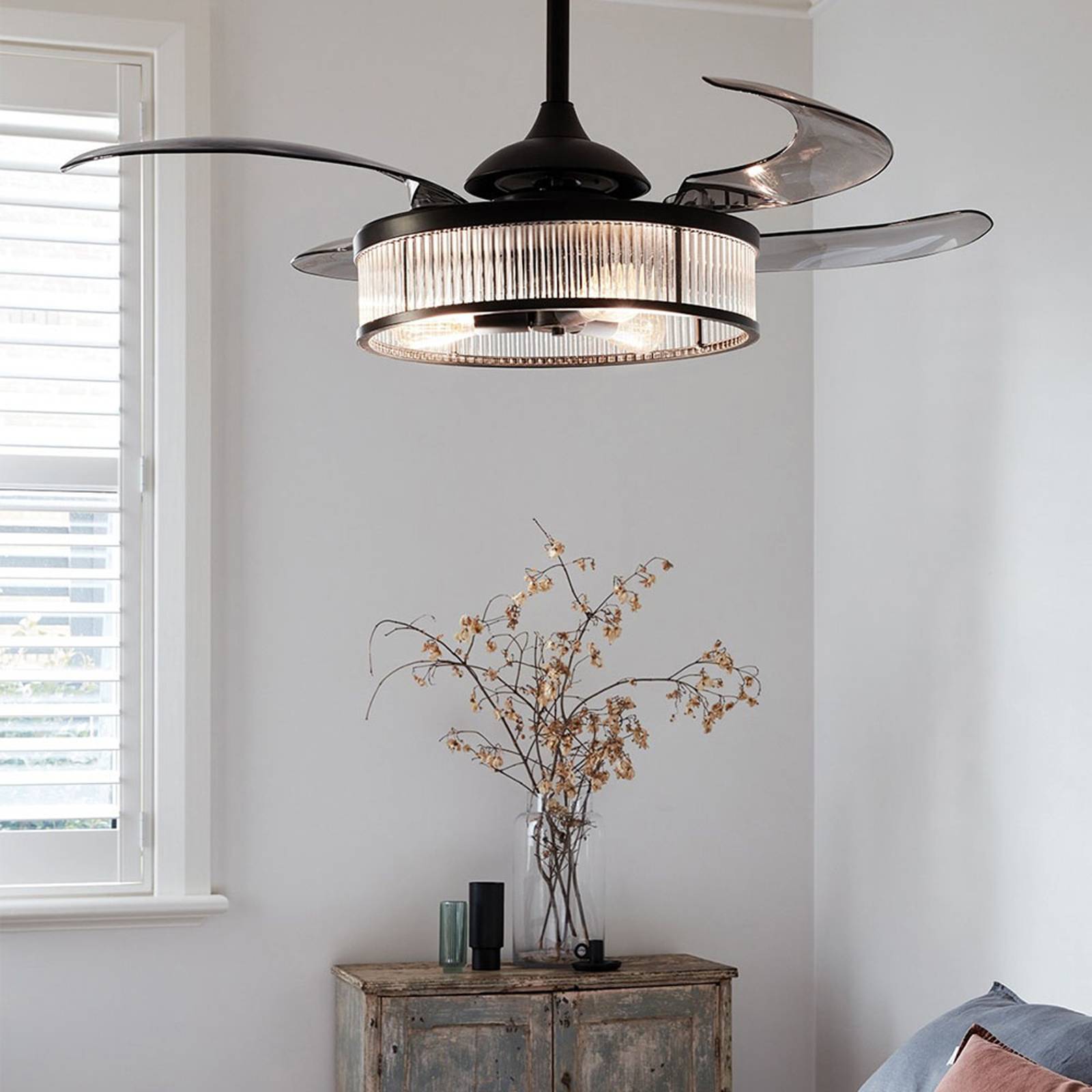 Beacon Lighting Světlo stropního ventilátoru Fanaway Corbelle černé tiché, Obývací pokoj / jídelna, Plast, ocel, E27, 4W, K: 40cm
