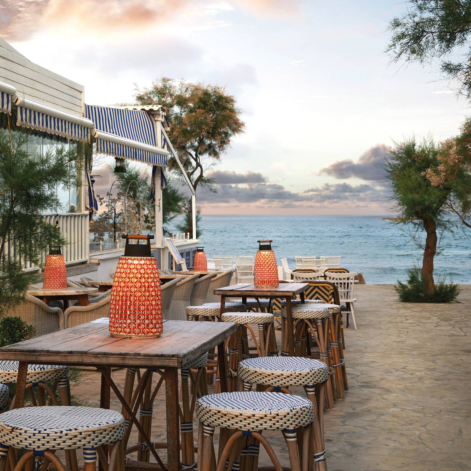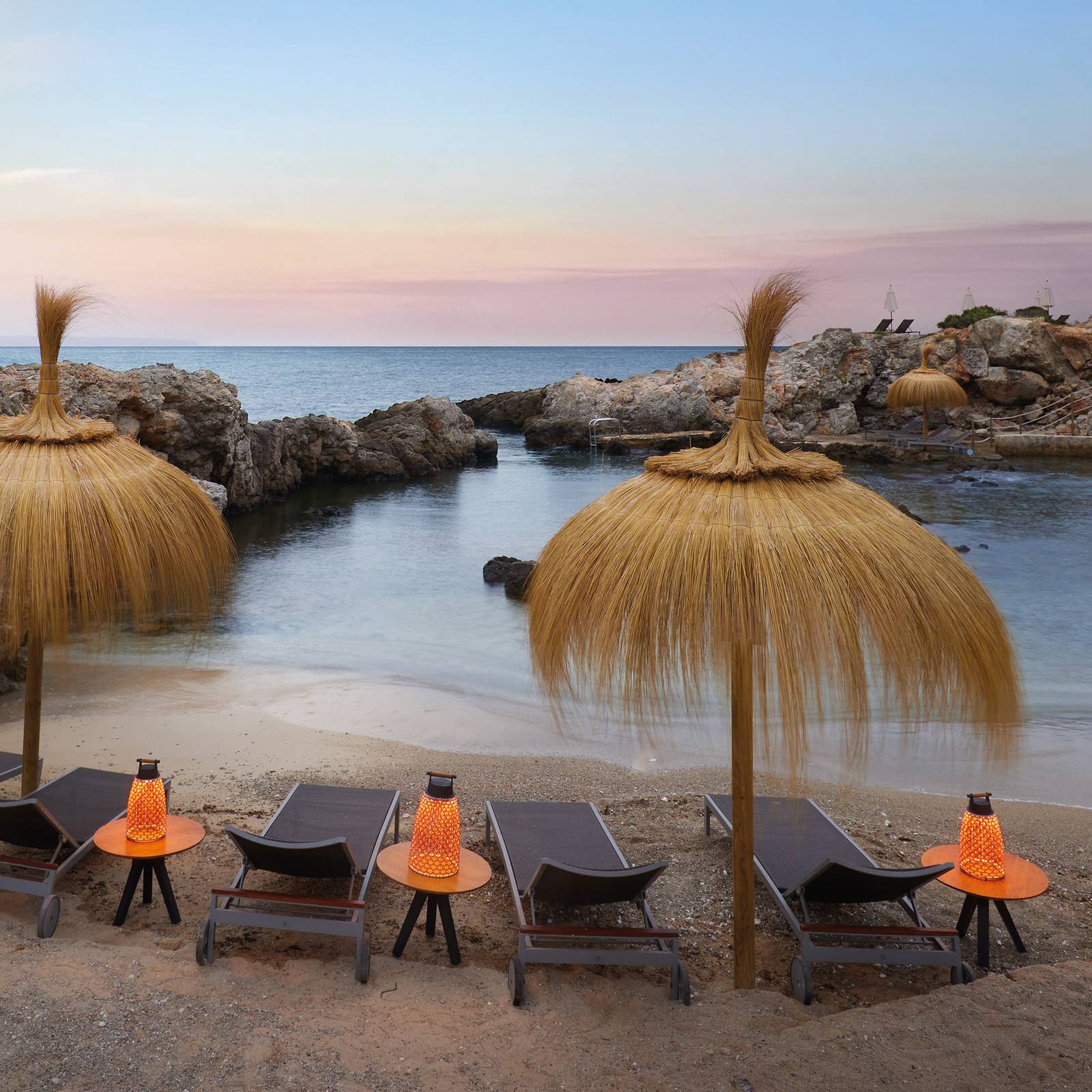 Bover Nabíjecí stolní lampa Nans M/41/R pro venkovní použití, červená, nerezová ocel, hliník, syntetické vlákno, teak, polykarbonát, 3W