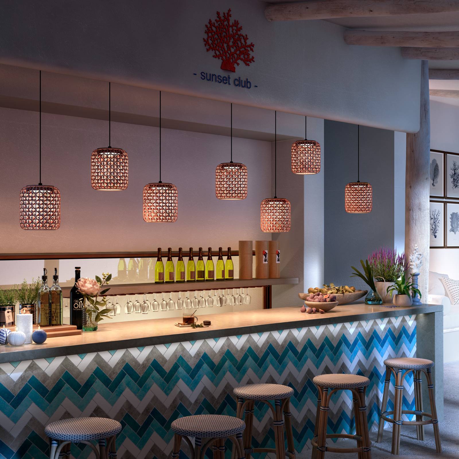 Bover Venkovní závěsné svítidlo Nans S/21 LED, červené, nerezová ocel, hliník, syntetické vlákno, polykarbonát, 9.5W, K: 24.7cm