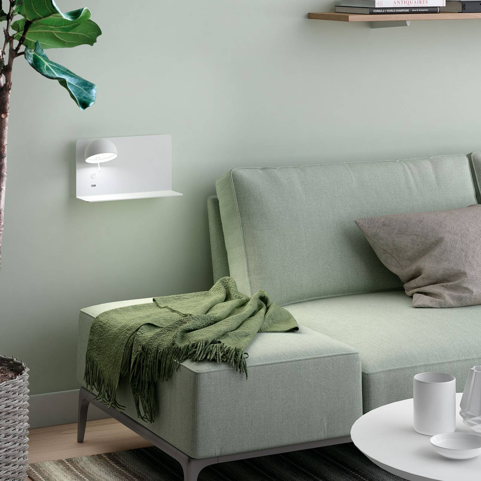 Bover Platet A02 nástěnné E14 s vypínačem, olivová, Obývací pokoj / jídelna, hliník, mosaz, železo, E14, 5W, L: 20 cm, K: 40cm