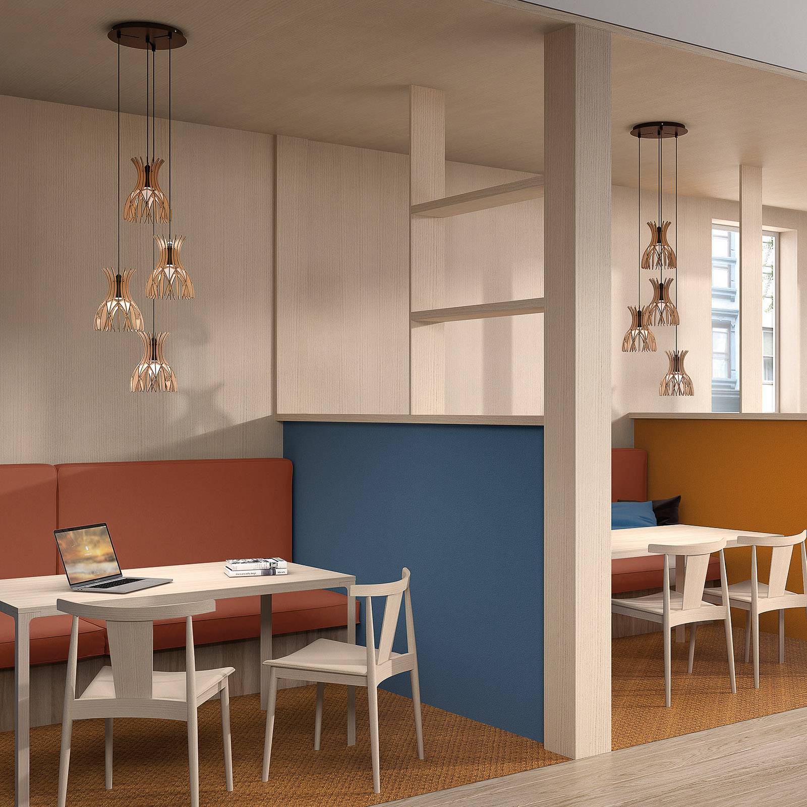 Bover Domita S/20/4L závěsné světlo, hnědá/buk, Obývací pokoj / jídelna, dřevo, železo, hliník, GU10, 8W