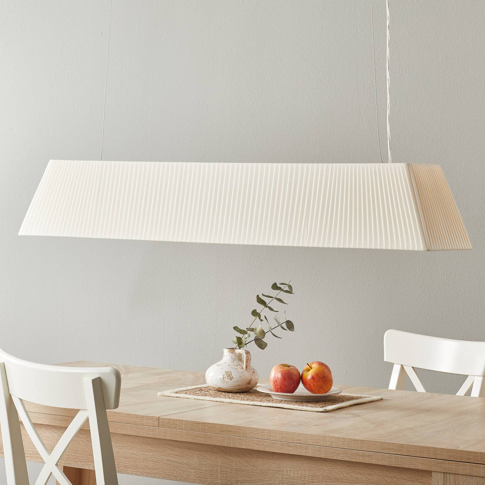 Bover Mei 100 podlouhlé závěsné světlo, krémová, Obývací pokoj / jídelna, železo, PVC, látka, E27, 46W, P: 100 cm, L: 25 cm, K: 20cm