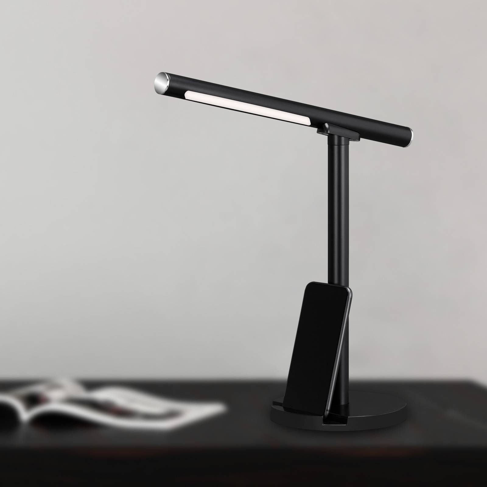 Briloner LED stolní lampa Everywhere, USB s baterií, černá, Pracovna / kancelář, kov, plast, 1.2W, K: 37cm