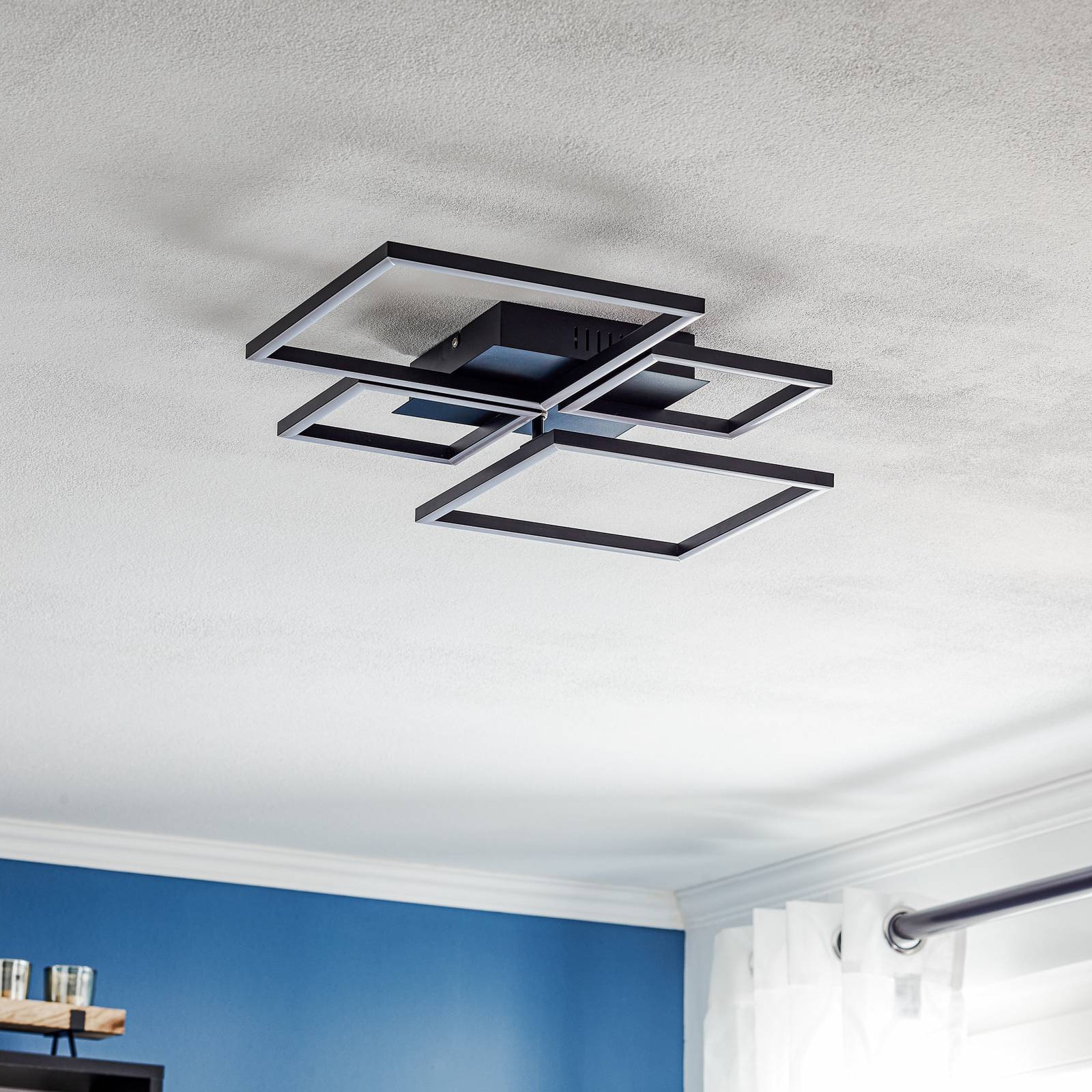 Briloner Stropní svítidlo LED Frame, CCT, 4 světla, černé, Obývací pokoj / jídelna, Kov, plast, 38W, P: 75 cm, L: 46.7 cm, K: 7.5cm