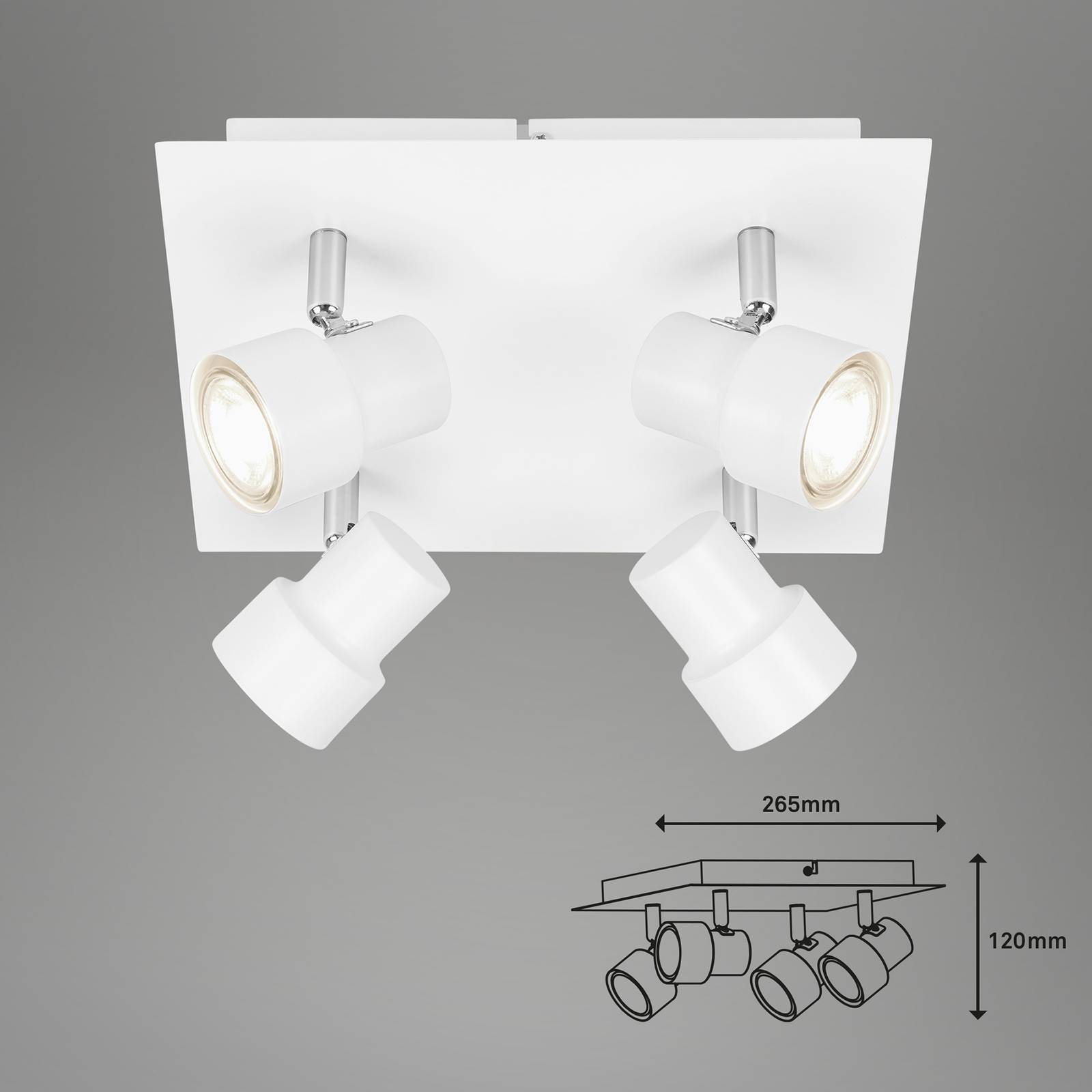 Briloner LED stropní svítidlo 2861-046 otočné 4 zdroje bílá, Obývací pokoj / jídelna, kov, GU10, 5W, P: 26.5 cm, L: 26.5 cm, K: 12cm