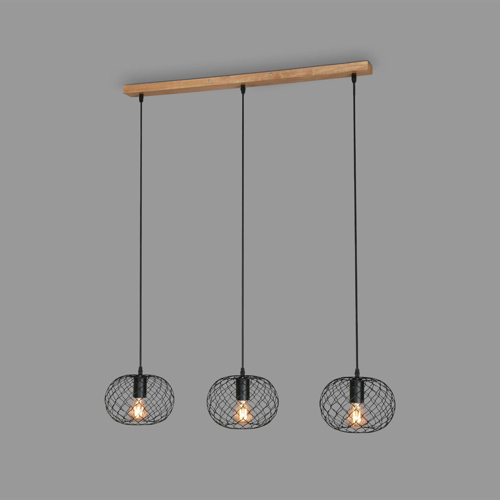 Briloner Závěsné světlo Kotak Vintage, černá/dřevo 3 zdroje, Kuchyň, kov, dřevo, E27, 40W, P: 90 cm, L: 22 cm, K: 15cm