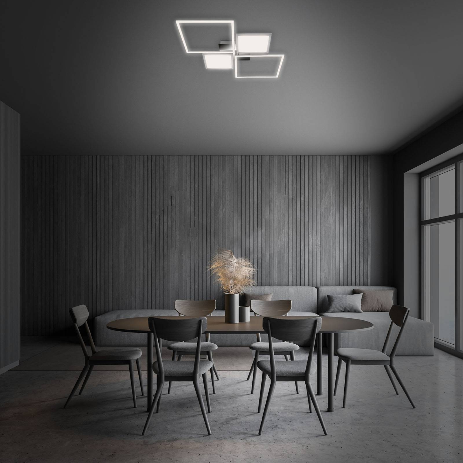 Briloner Stropní světlo Rey, 4 zdroje, černé, Obývací pokoj / jídelna, kov, plast, 6W, P: 60 cm, L: 60 cm, K: 8.2cm