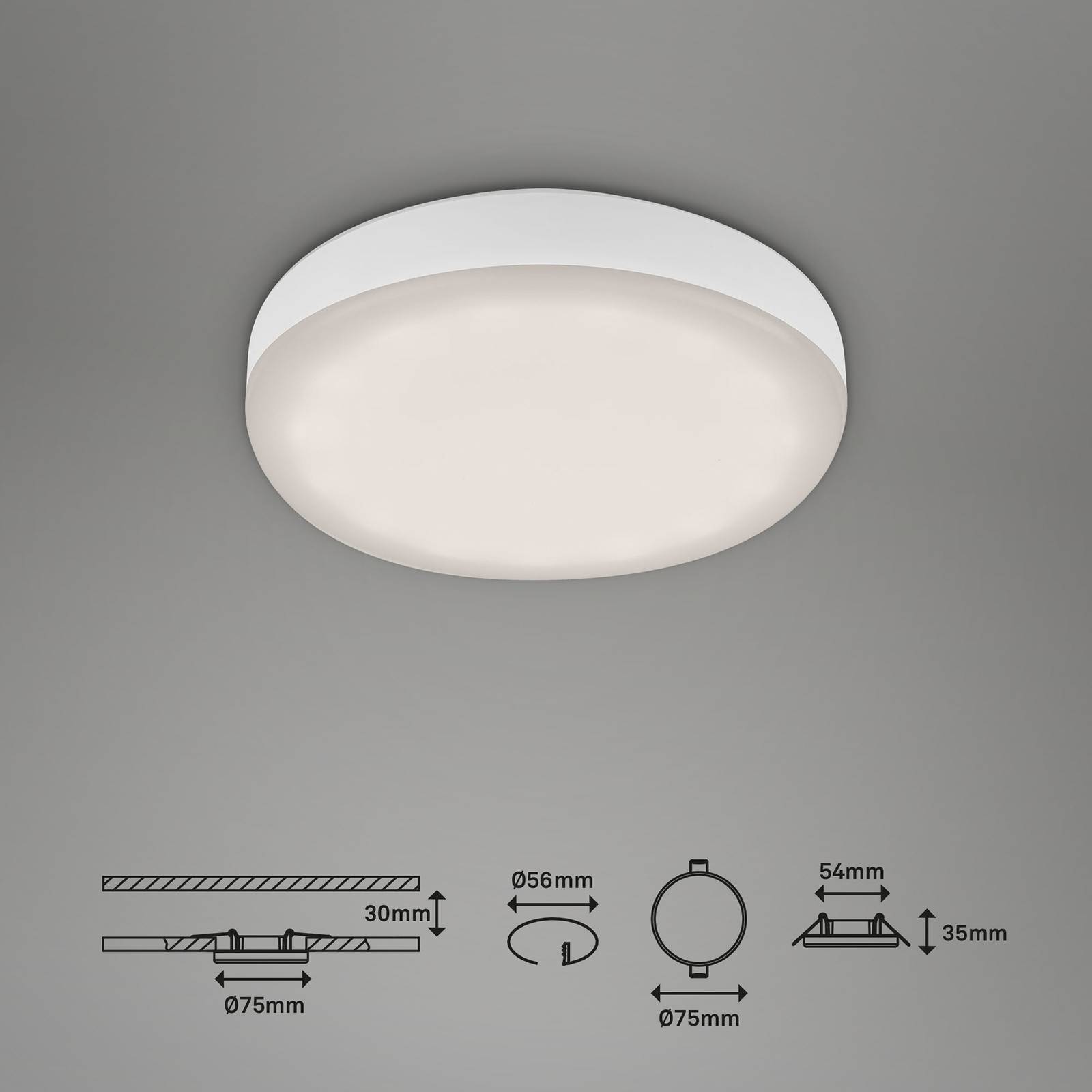 Briloner Vestavné bodové svítidlo LED Plat white 7, 5 cm 4000K sada 3 ks, Koupelna, Plast, kov, 3W, K: 3.5cm