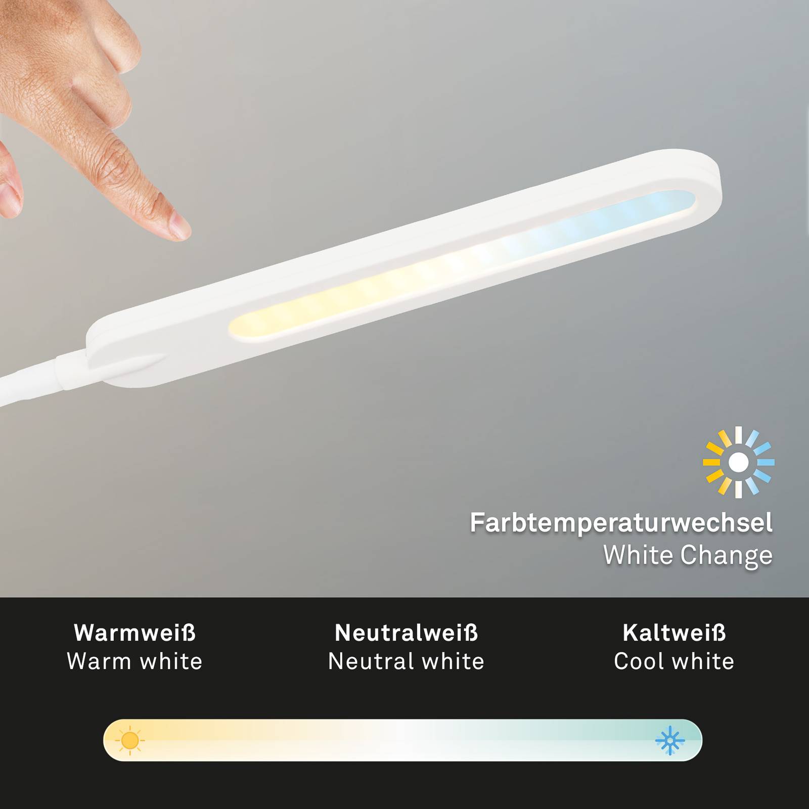 Briloner LED stolní lampa Servo, stmívatelná, CCT, bílá, Pracovna / kancelář, kov, plast, 8W, K: 95cm