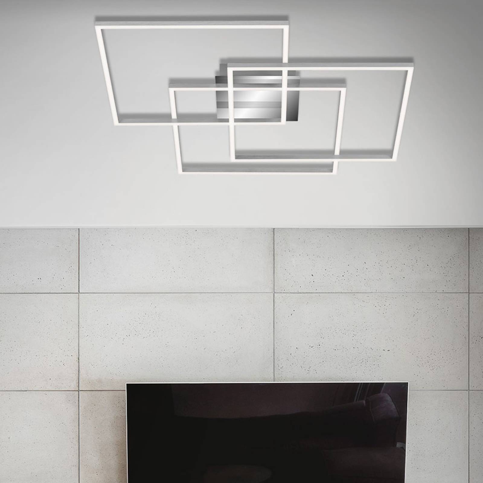 Briloner LED stropní světlo Frame CCT, chrom-hliník 70x70cm, Obývací pokoj / jídelna, kov, plast, 52W, P: 70.3 cm, L: 70.3 cm, K: 10cm