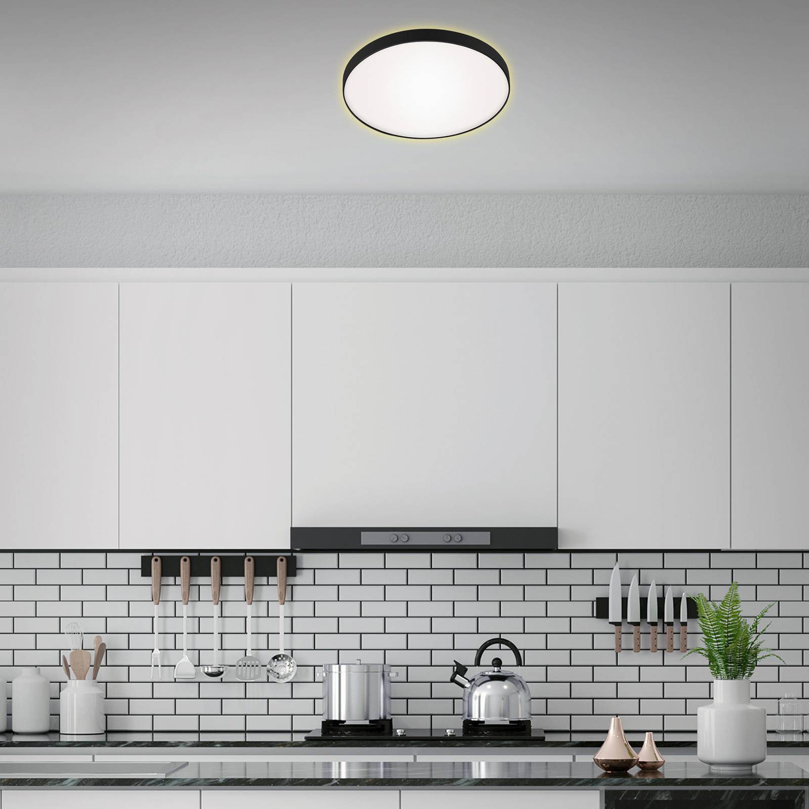Briloner Stropní svítidlo LED Flet s podsvícením, Ø 28, 5 cm, Obývací pokoj / jídelna, Kov, plast, 12W, K: 6cm
