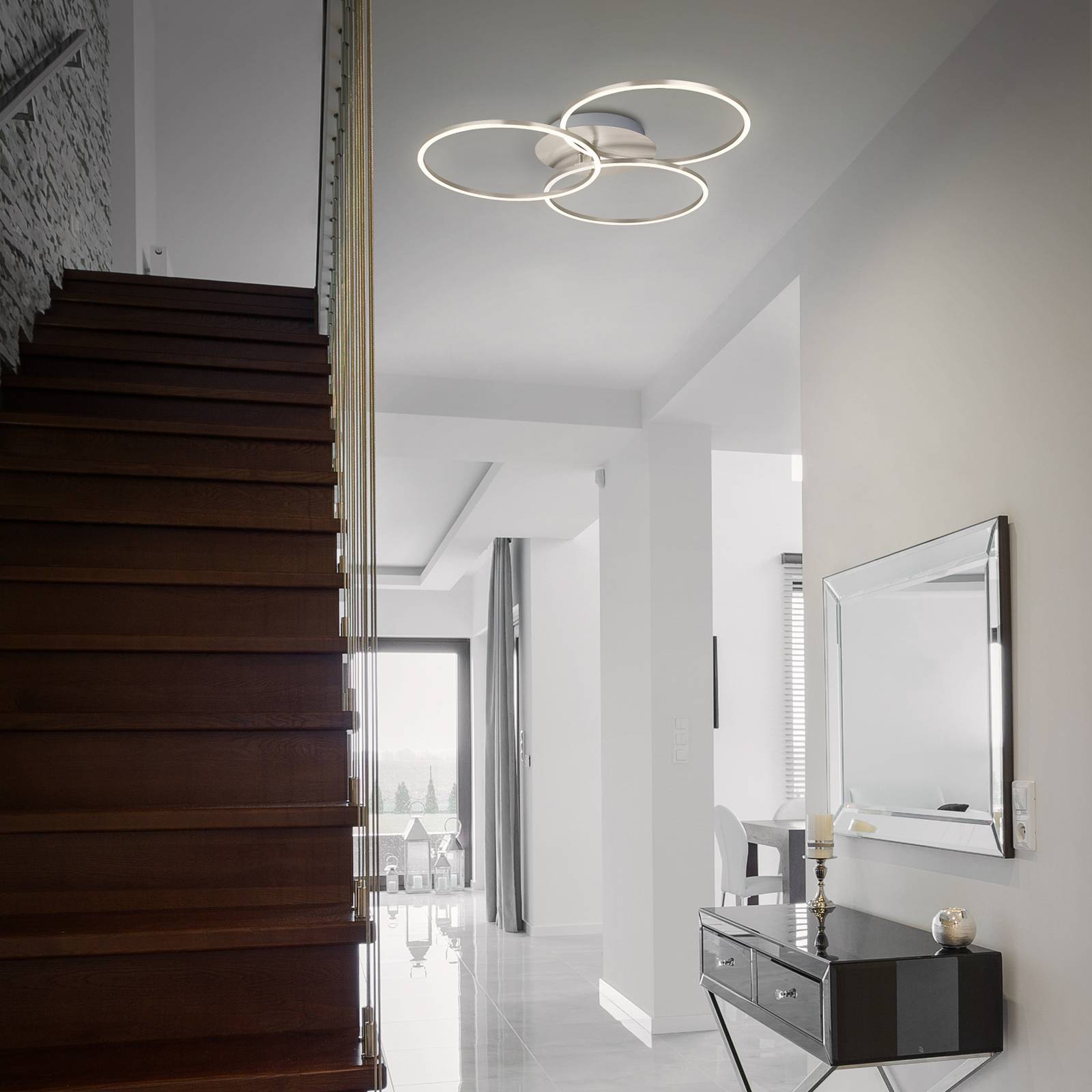 Briloner Stropní světlo Frame Ring Switch dim nikl 3 zdroje, Obývací pokoj / jídelna, kov, plast, 40W, P: 71.7 cm, L: 67.4 cm, K: 10.3cm