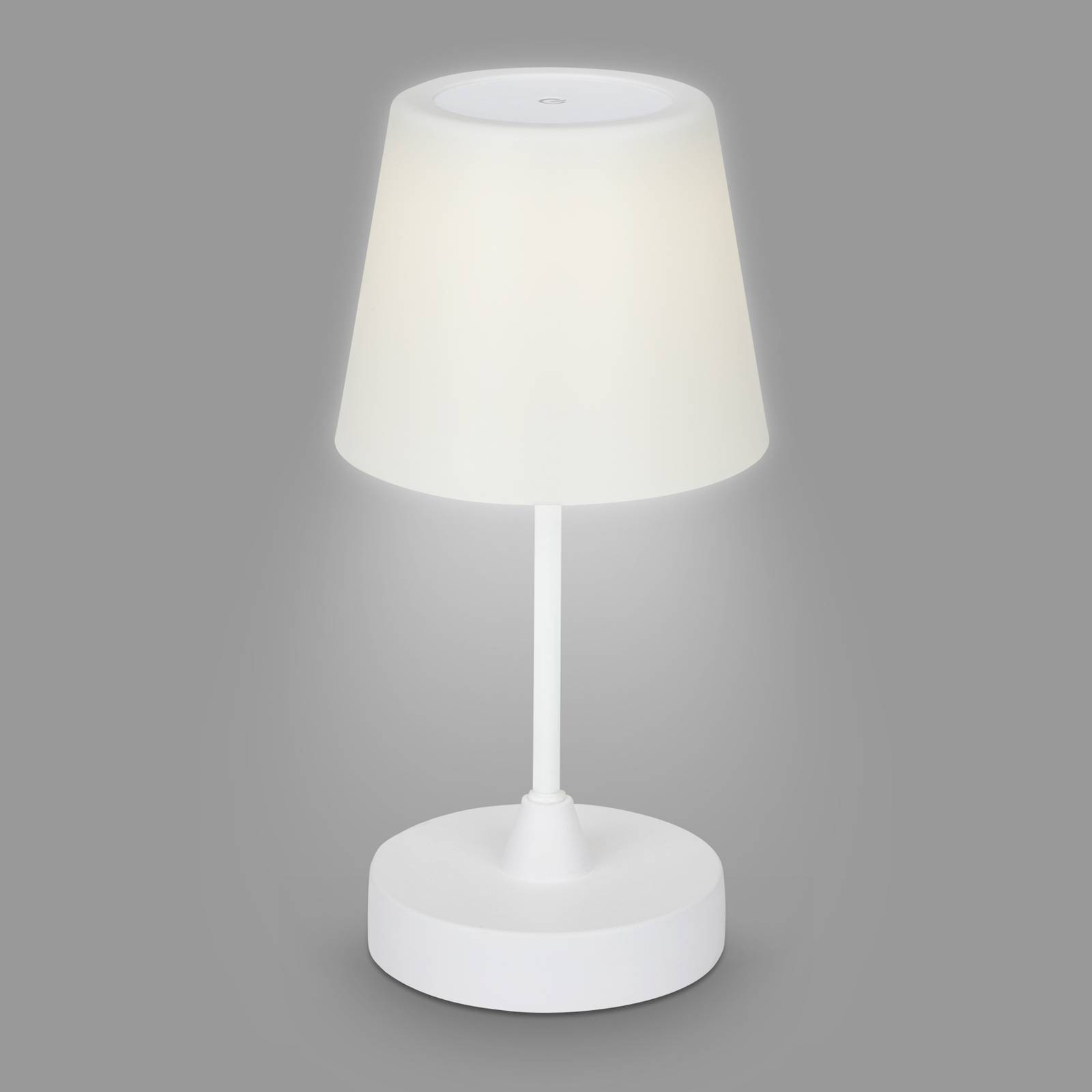 Briloner Venkovní stolní lampa LED Campi, dobíjecí baterie, stmívatelná, bílá, plast, 3W, K: 30cm