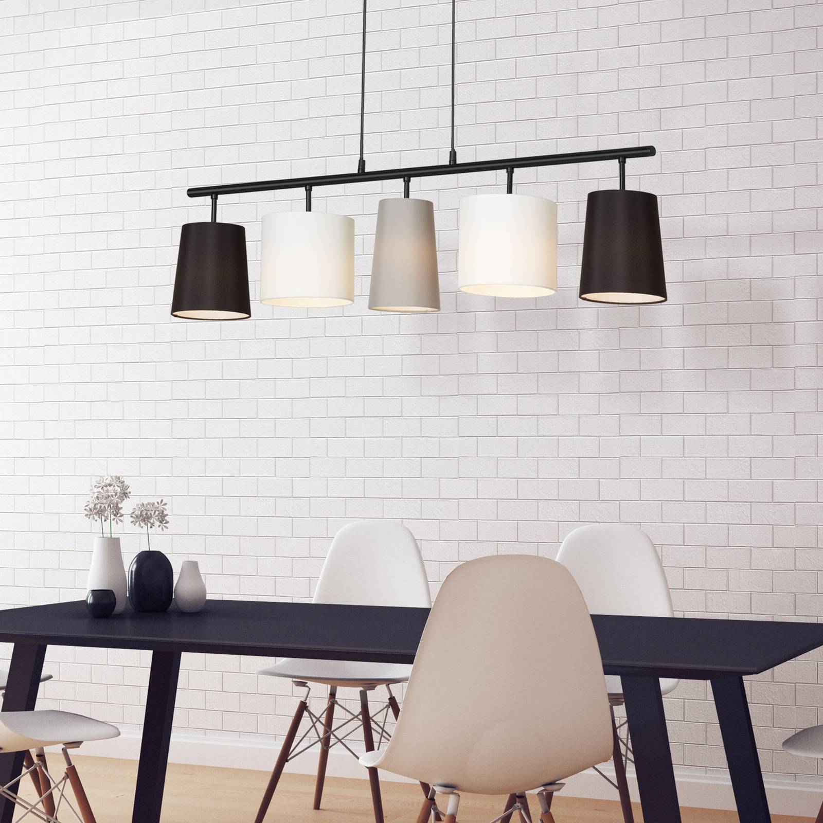 Briloner Závěsné světlo Shades s pěti textilními stínidly, Obývací pokoj / jídelna, textil, kov, E14, 40W, P: 96 cm