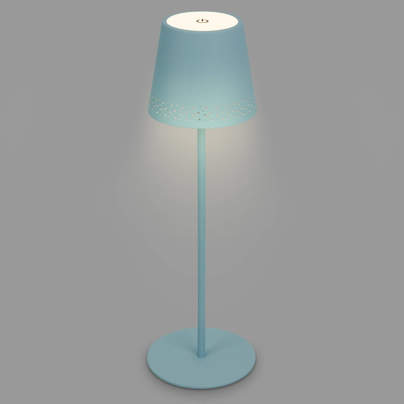 Briloner Stolní lampa LED Kiki s dobíjecí baterií 3 000K, holubičí modř, Obývací pokoj / jídelna, kov, 2.6W, K: 38.5cm