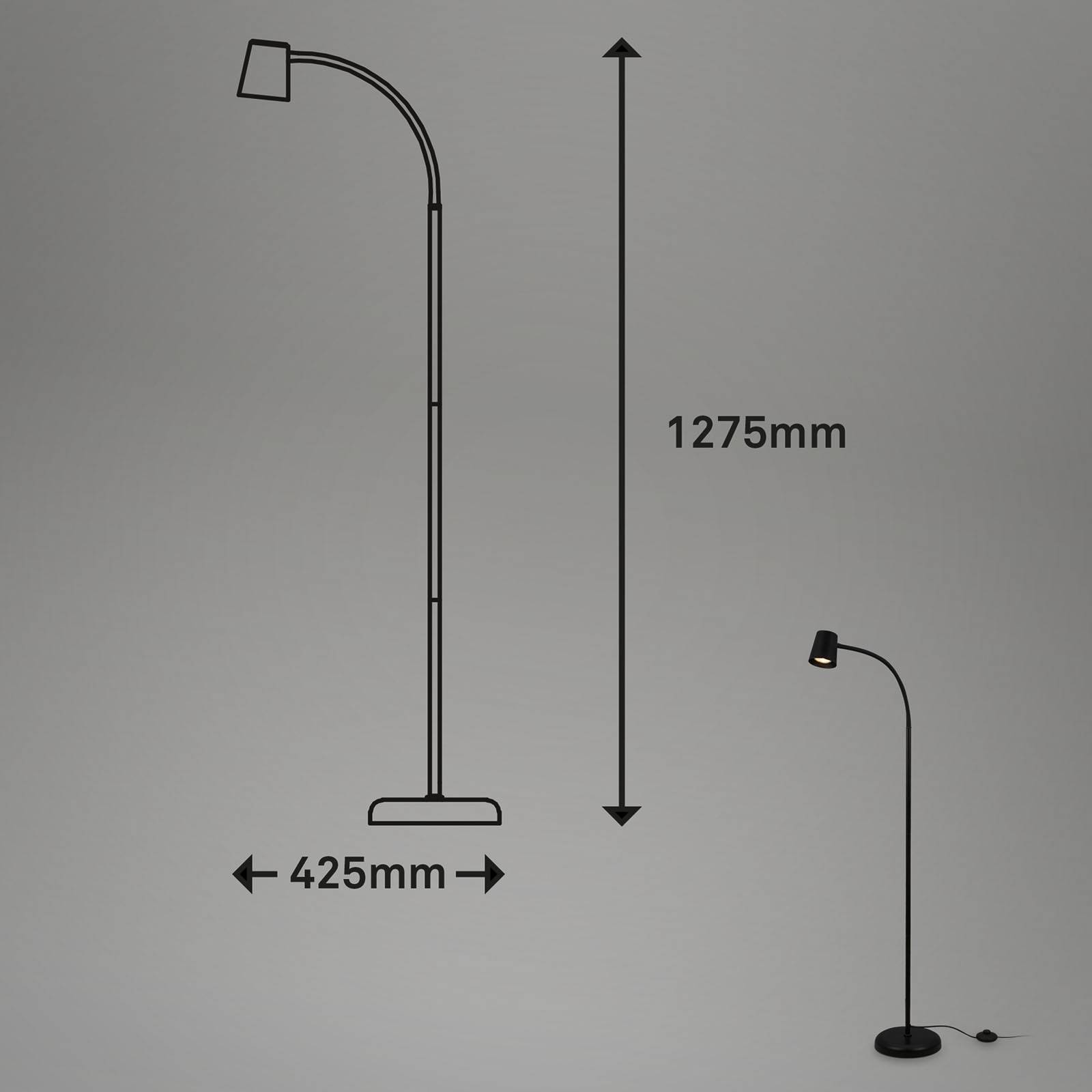 Briloner Stojací lampa Skriva, nastavitelná, GU10, černá, Obývací pokoj / jídelna, kov, GU10, 9W, K: 127.5cm