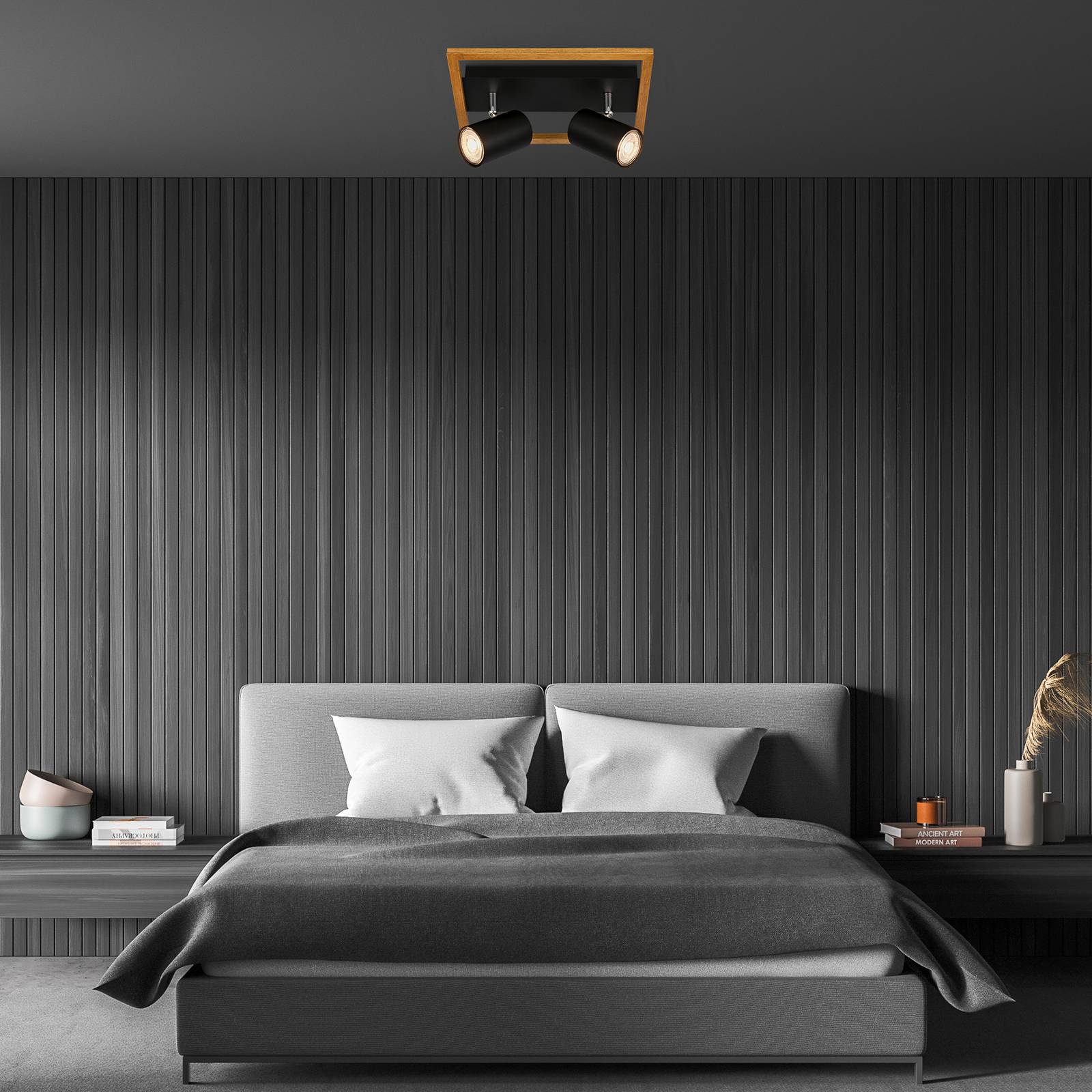 Briloner Stropní bod Frey dřevěný rám GU10 černý 2 světla, Obývací pokoj / jídelna, Kov, dřevo, GU10, 9W, P: 27 cm, L: 20 cm, K: 12.5cm