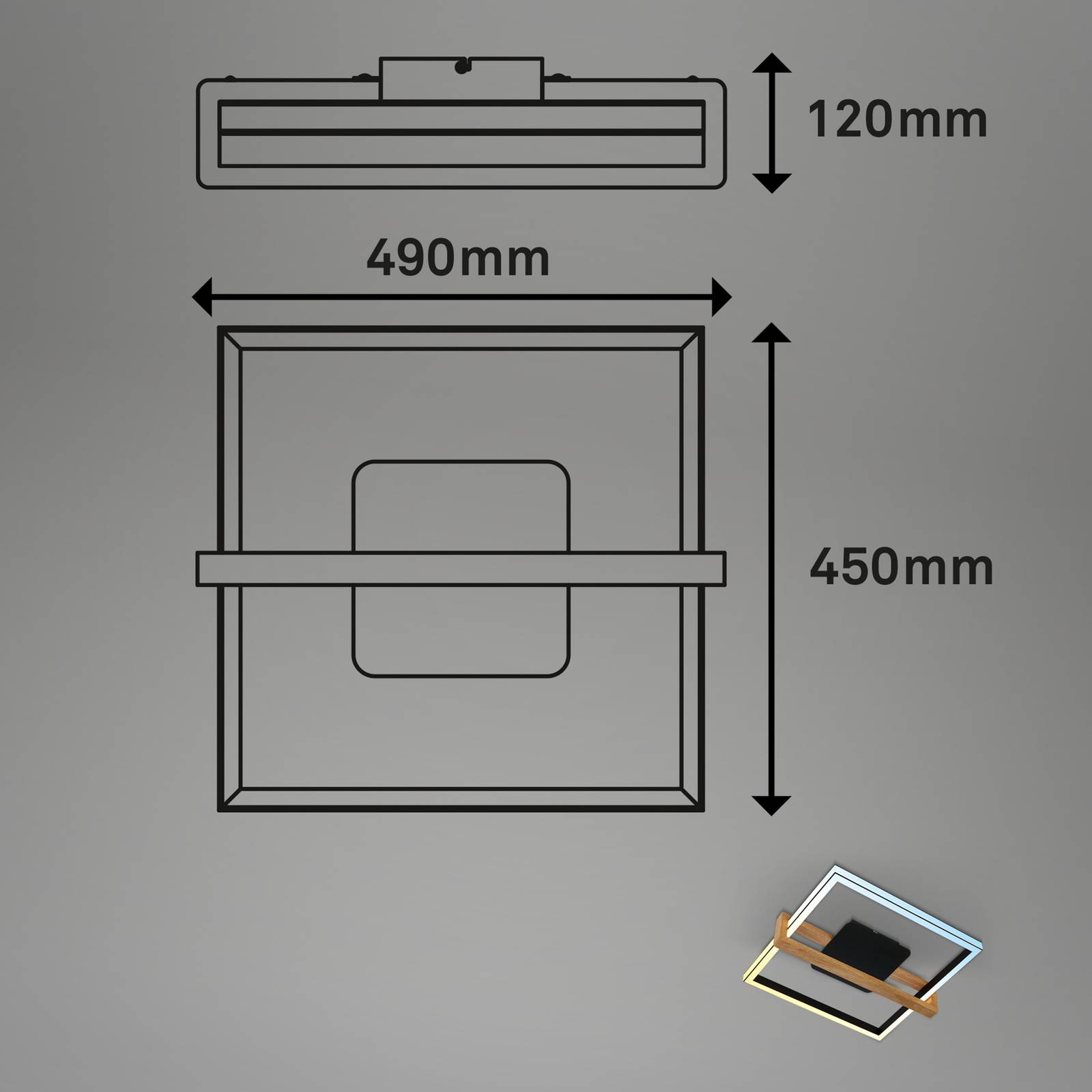 Briloner Stropní svítidlo LED 3768015 CCT s dálkovým ovládáním, Obývací pokoj / jídelna, Kov, plast, dřevo, 40W, P: 49 cm, L: 45 cm, K: 12cm