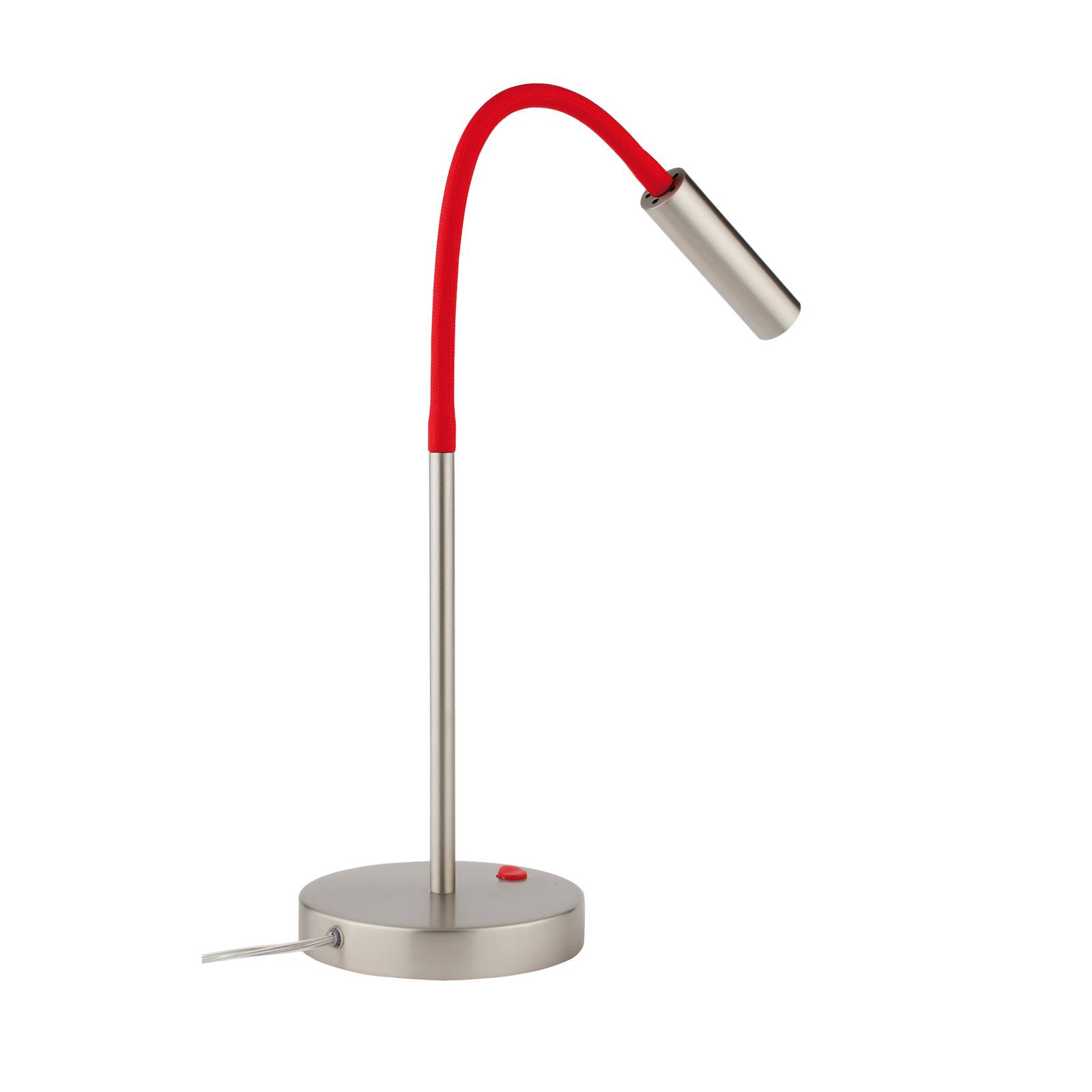 Busch LED stolní lampa Rocco, matný nikl rameno červená, Obývací pokoj / jídelna, hliník, 6.5W, K: 43cm