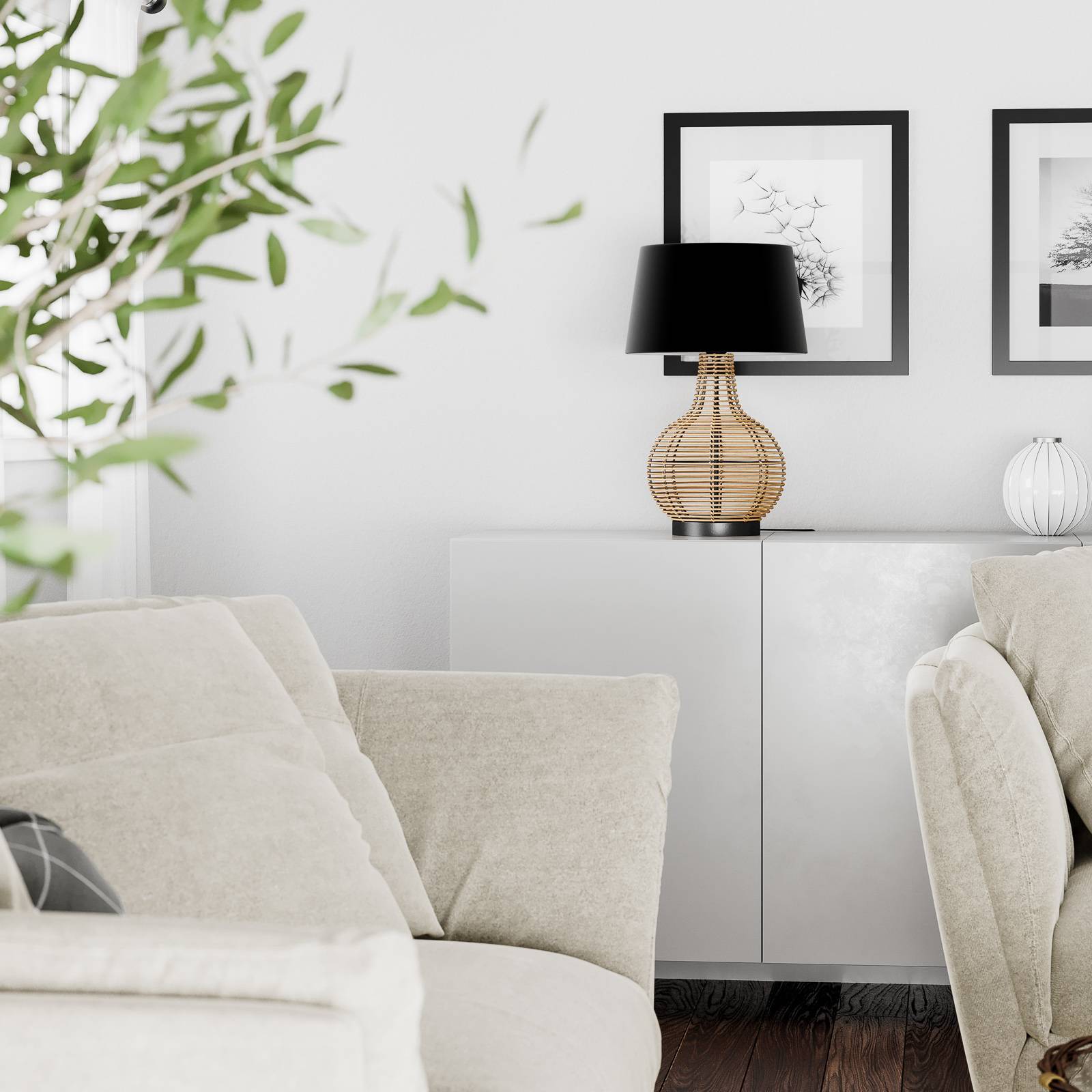 By Rydéns Granada stolní lampa, ratan a látka, Obývací pokoj / jídelna, bavlněná textilie, ratan, kov, E27, 40W, K: 52cm