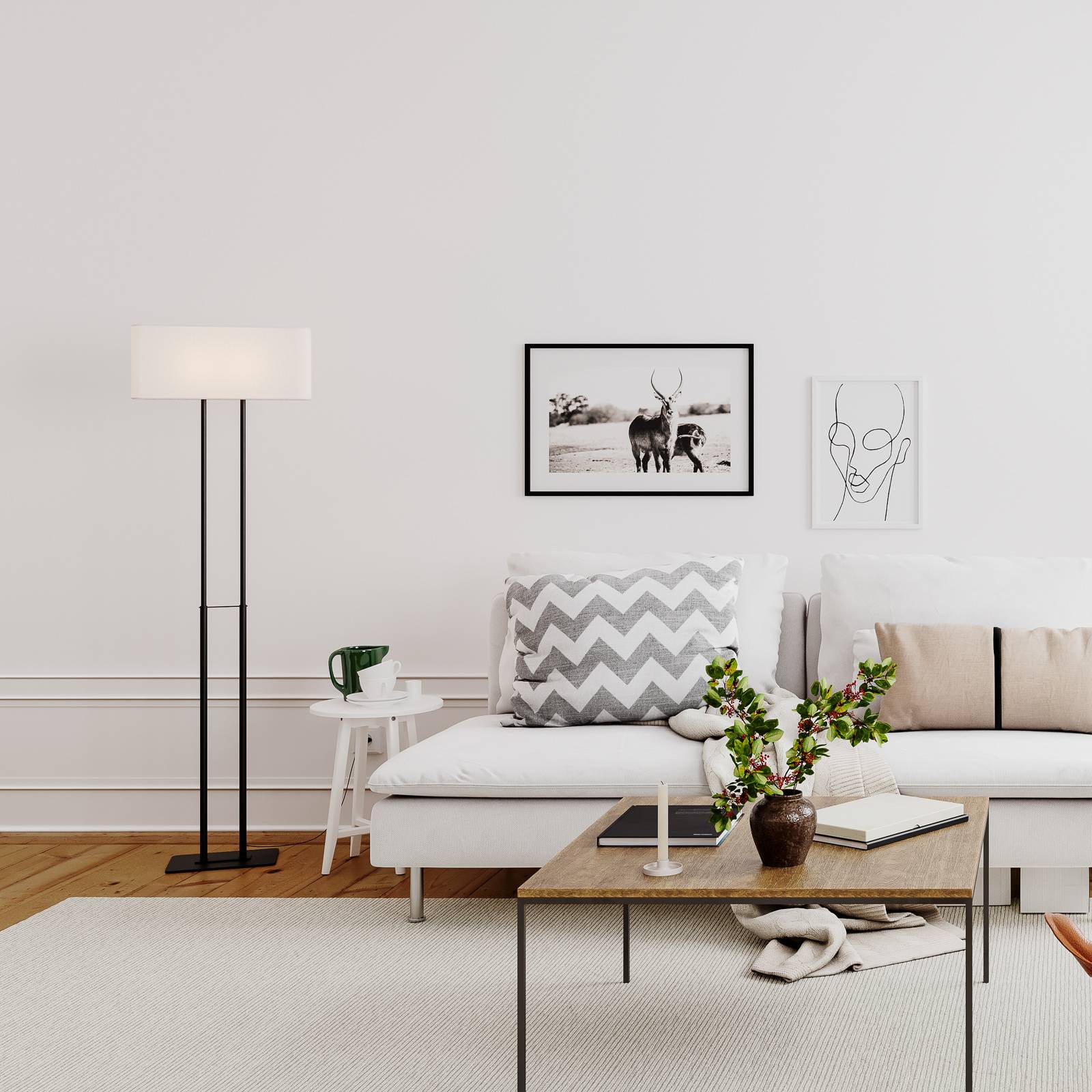 By Rydéns Luton stojací lampa, bílá/černá, 150 cm, Obývací pokoj / jídelna, textil, kov, E27, 40W, P: 40 cm, L: 20 cm, K: 150cm