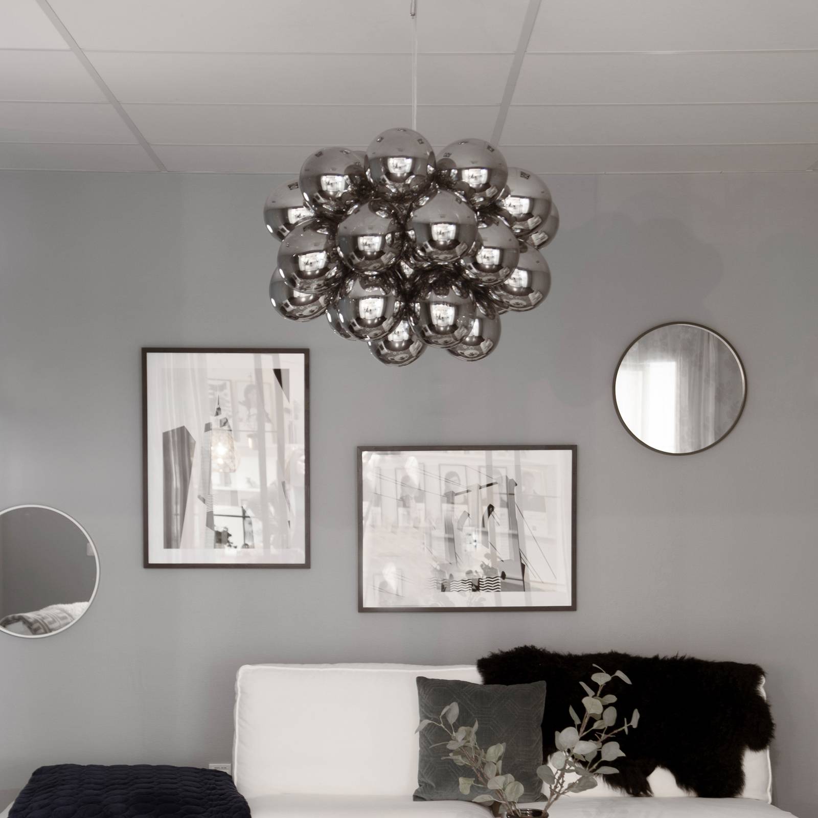 By Rydéns Gross Grande závěsné světlo kouřově šedá, Obývací pokoj / jídelna, kov, sklo, G9, 40W, K: 50cm