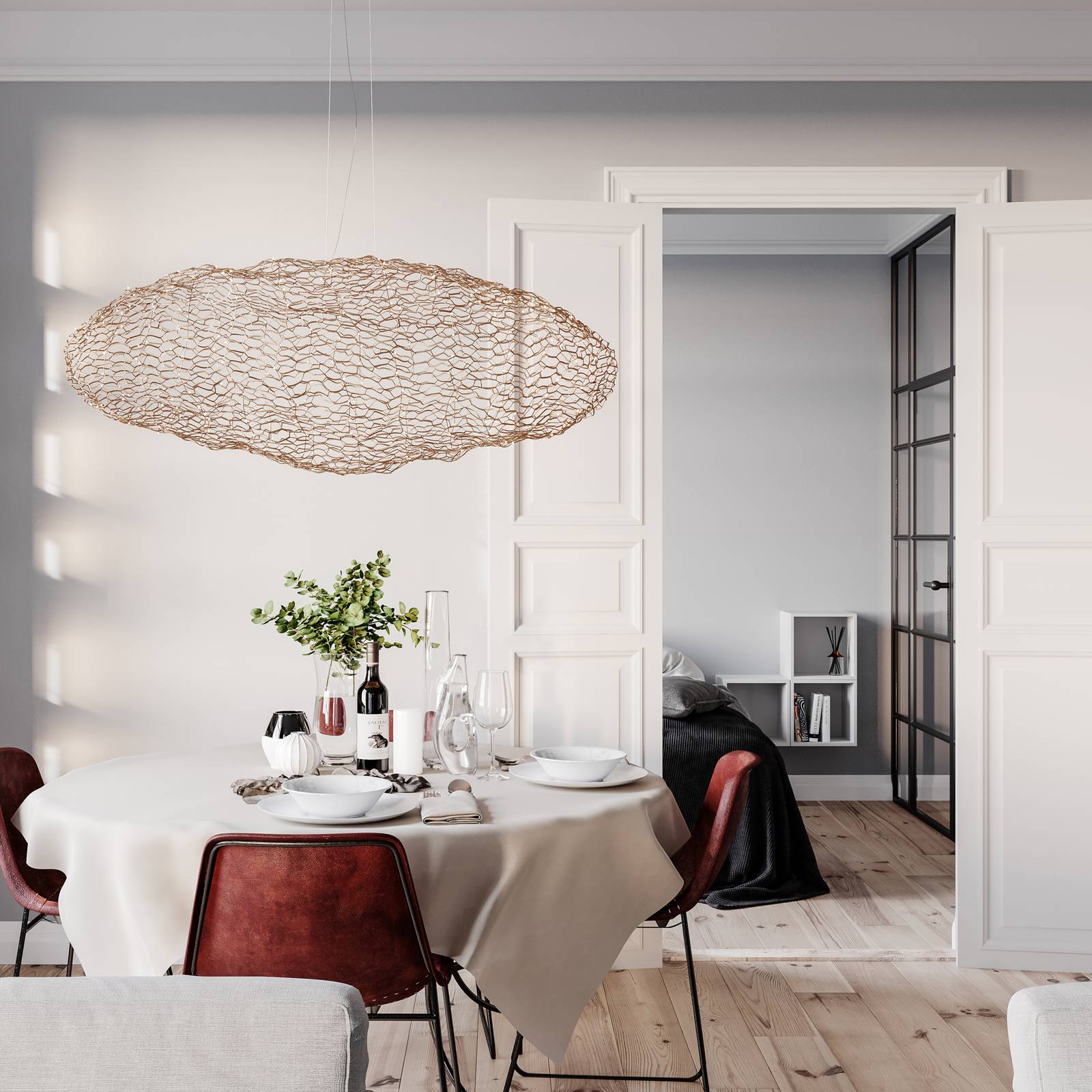 By Rydéns Labelle závěsné světlo, kouřově šedá, Obývací pokoj / jídelna, kov, E14, 5W, P: 90 cm, L: 59.5 cm
