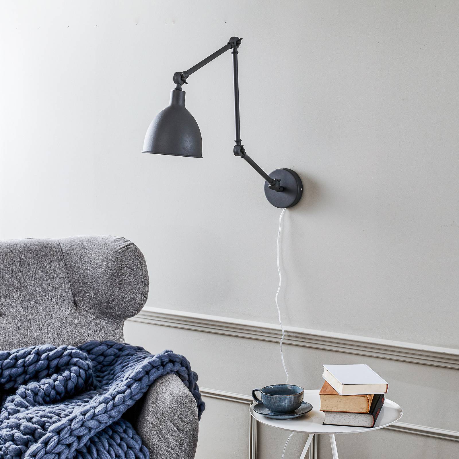 By Rydéns Bazar nástěnné světlo, zástrčka, šedá, Obývací pokoj / jídelna, kov, E27, 40W, L: 17 cm, K: 37.5cm