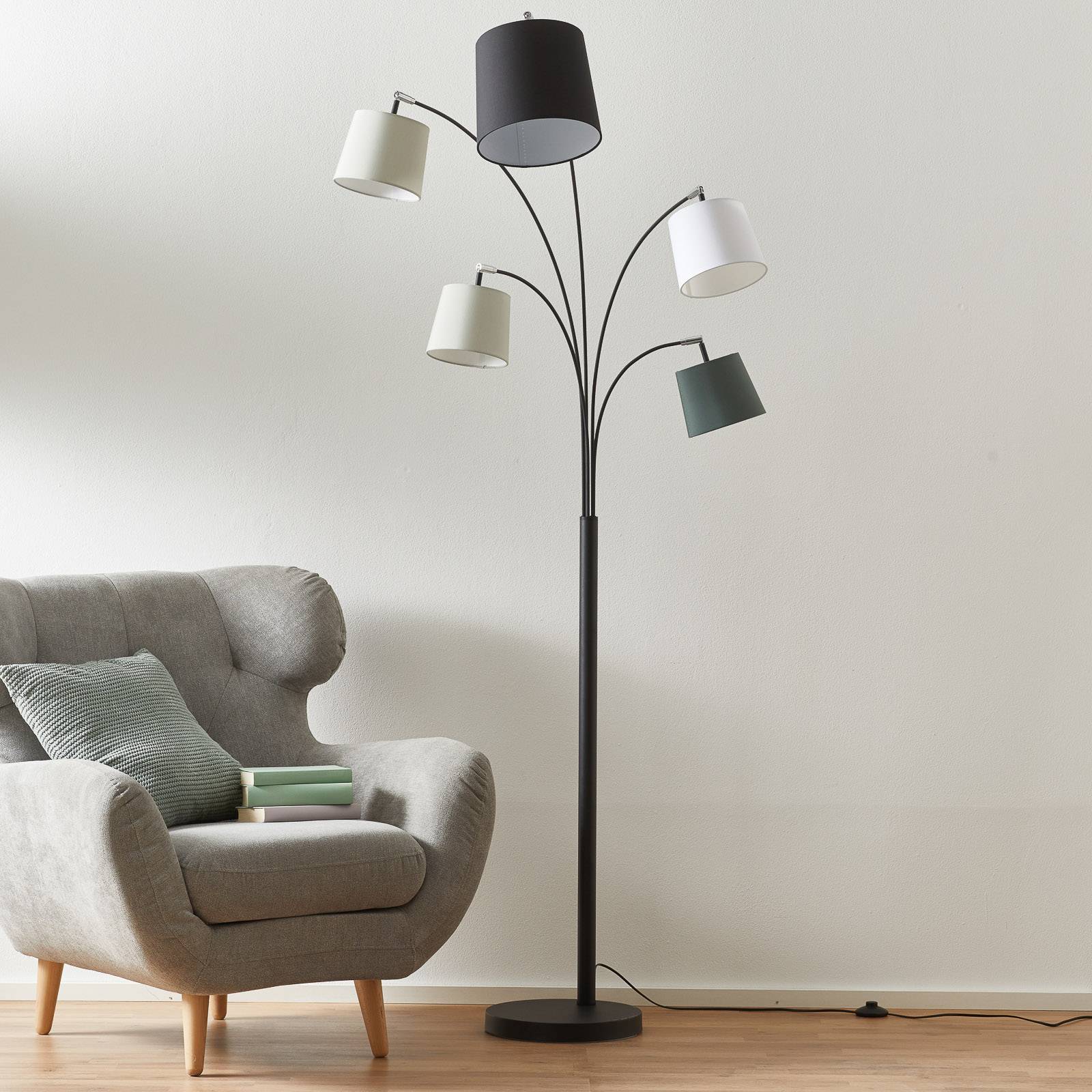 By Rydéns Foggy stojací lampa, 5 stínidel, černá, Obývací pokoj / jídelna, kov, textil, E14, 25W, L: 80 cm, K: 200cm