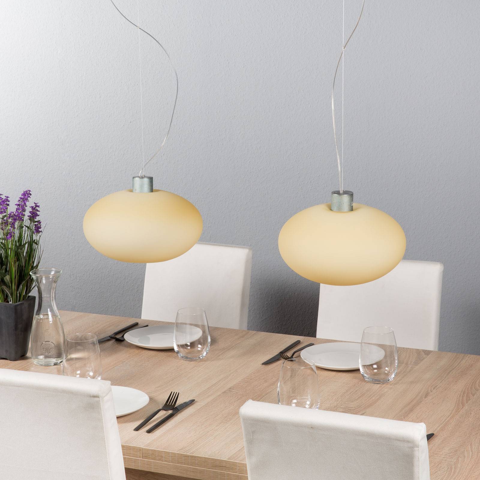 Casablanca Aih – závěsné světlo 2zdr krém matné, Obývací pokoj / jídelna, ručně foukané sklo, kartáčovaný hliník, E27, 75W, K: 17cm