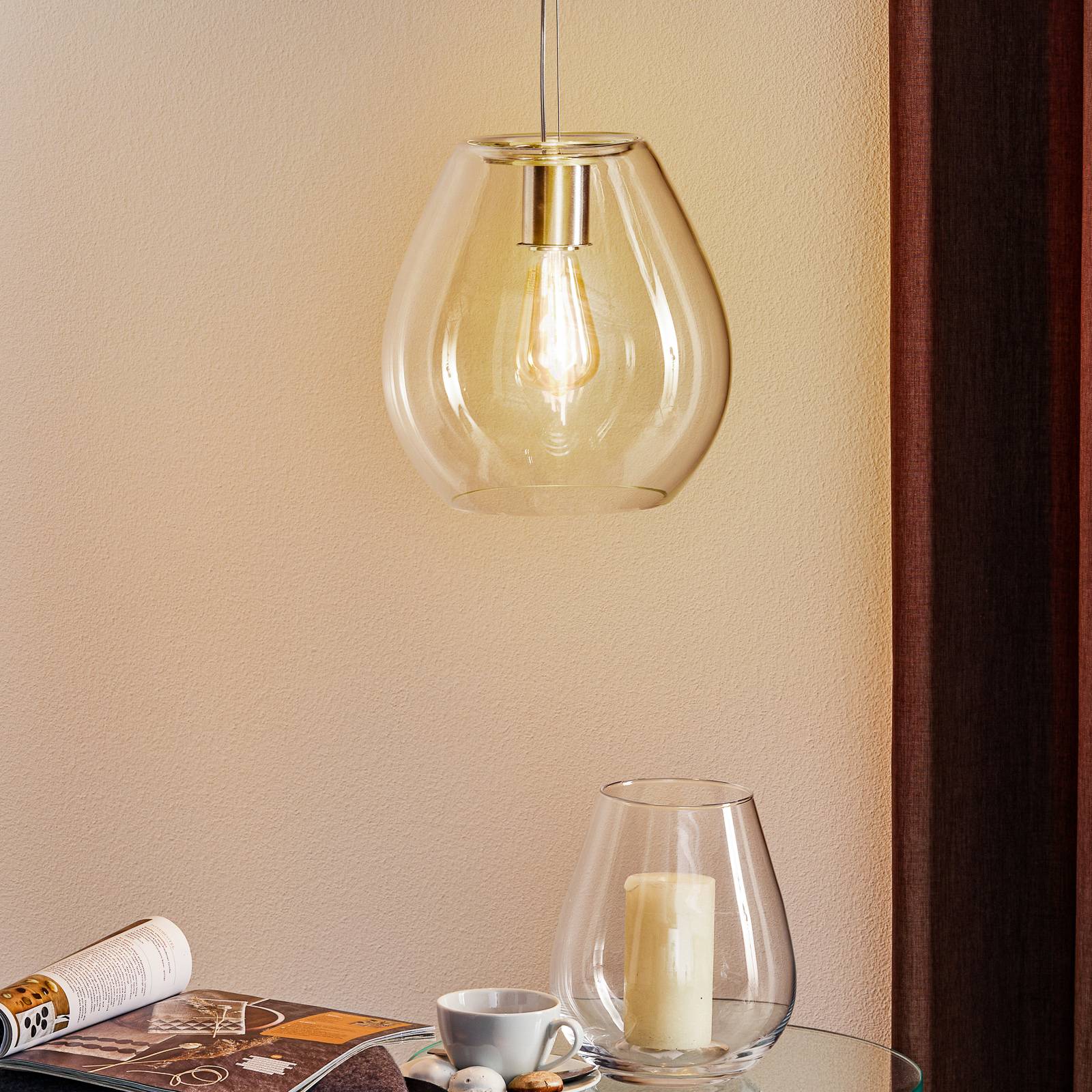 Casablanca Bagan, závěsné světlo tři zdroje Ø26cm, Obývací pokoj / jídelna, sklo ručně foukané, hliník ručně kartáčovaný, E27, 100W, K: 27cm