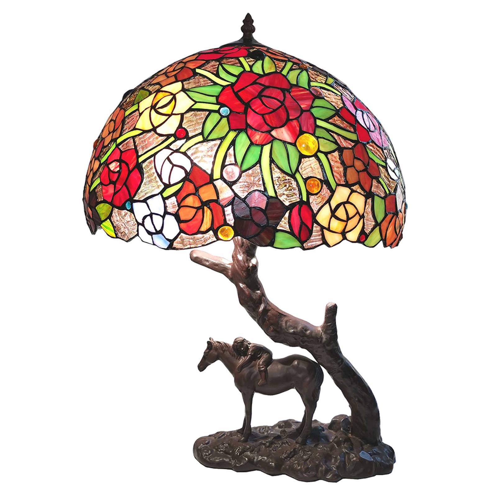 Clayre&Eef Stolní lampa 5LL-6061 styl Tiffany, červená/zelená, Obývací pokoj / jídelna, polyresin, sklo, E27, 60W, K: 58cm