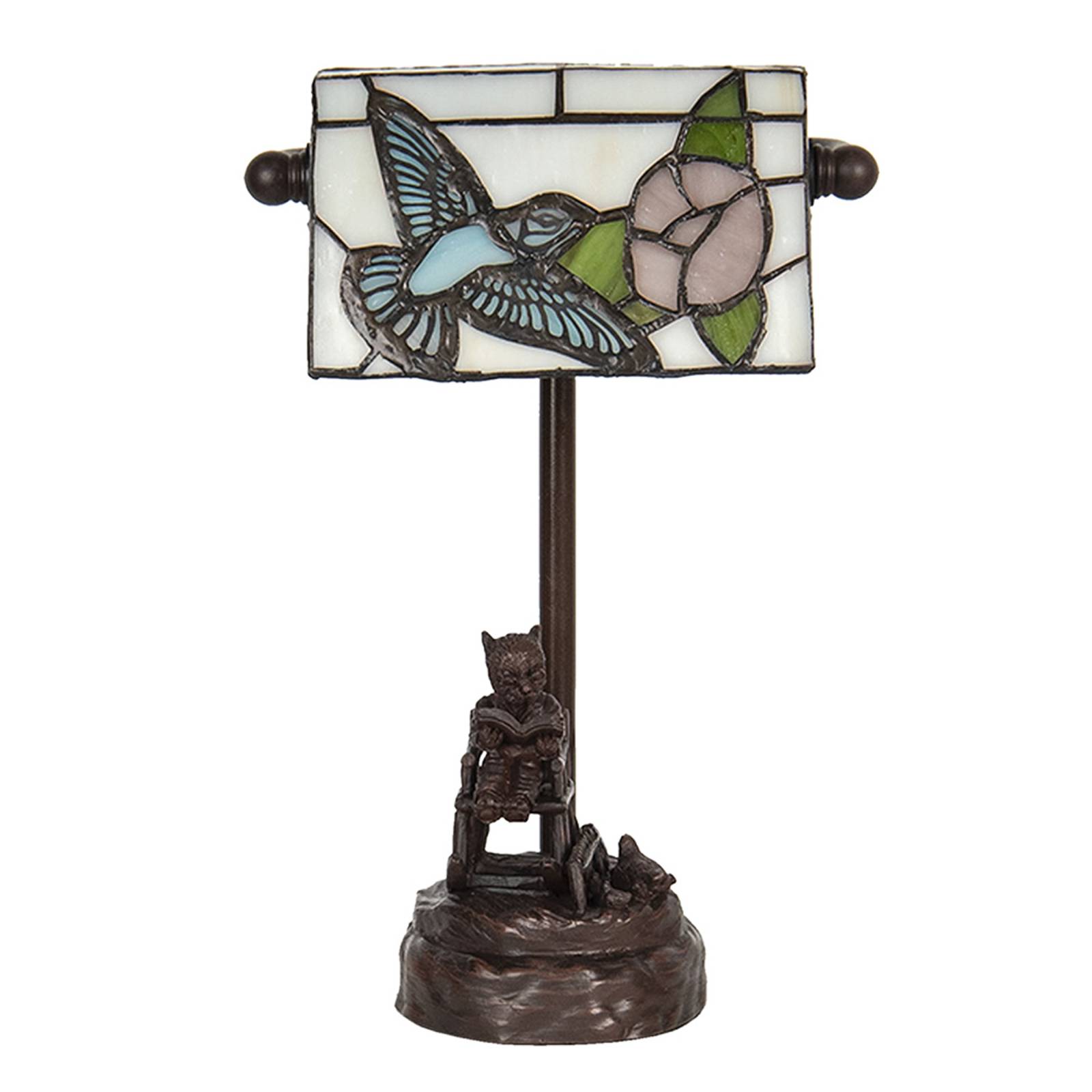 Clayre&Eef Stolní lampa 5LL-6050 ve stylu Tiffany, Obývací pokoj / jídelna, polyresin, sklo, E14, 25W, P: 17 cm, L: 15 cm, K: 28cm