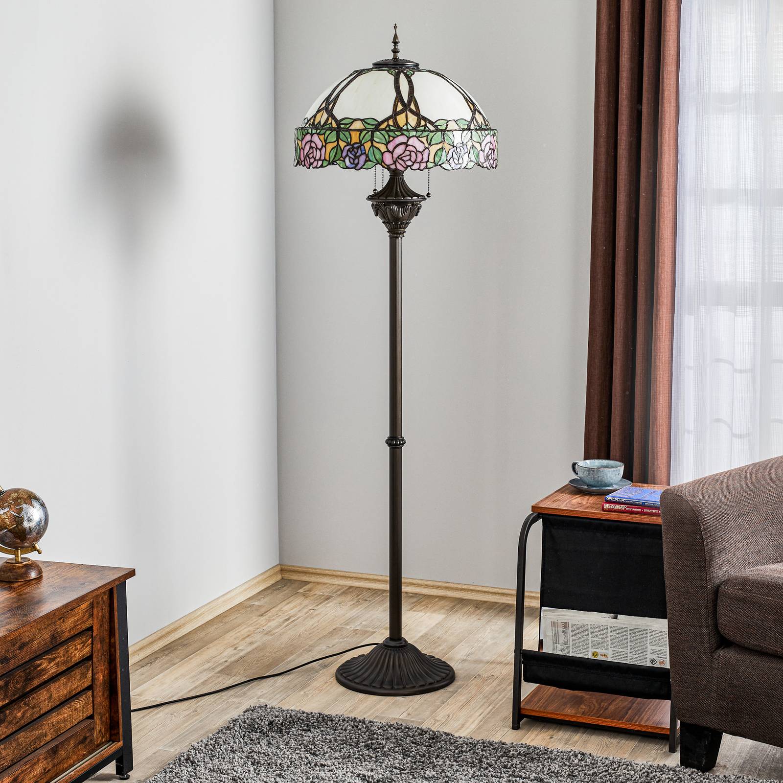 Clayre&Eef Marla – stojací lampa v Tiffany stylu, Obývací pokoj / jídelna, sklo, kov, E27, 60W, K: 183cm