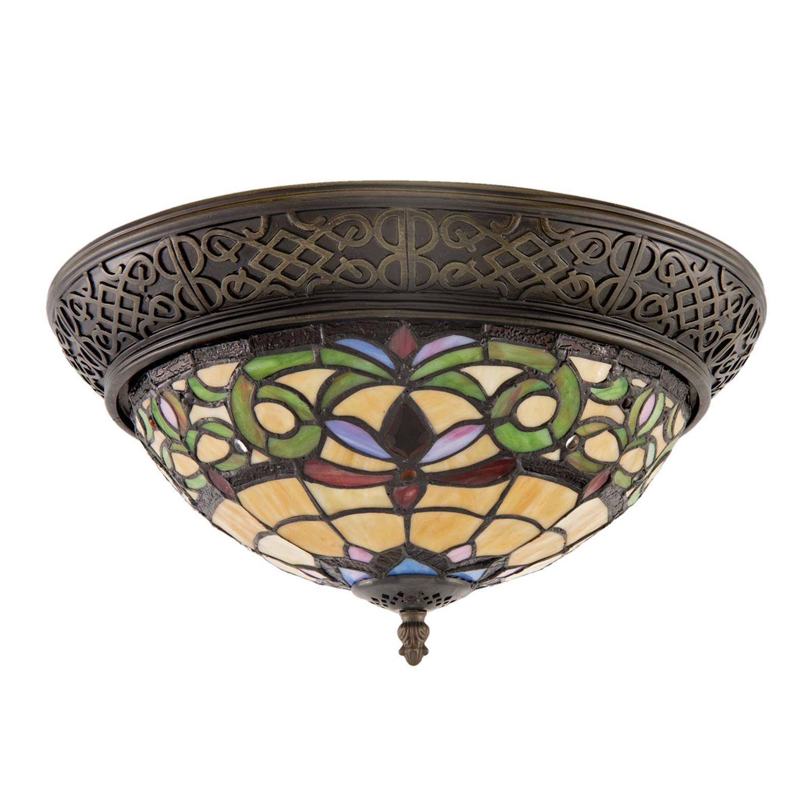 Clayre&Eef Stropní světlo 5909 široký okraj a rozmanité sklo, Obývací pokoj / jídelna, sklo, polyresin, E14, 40W, K: 20cm