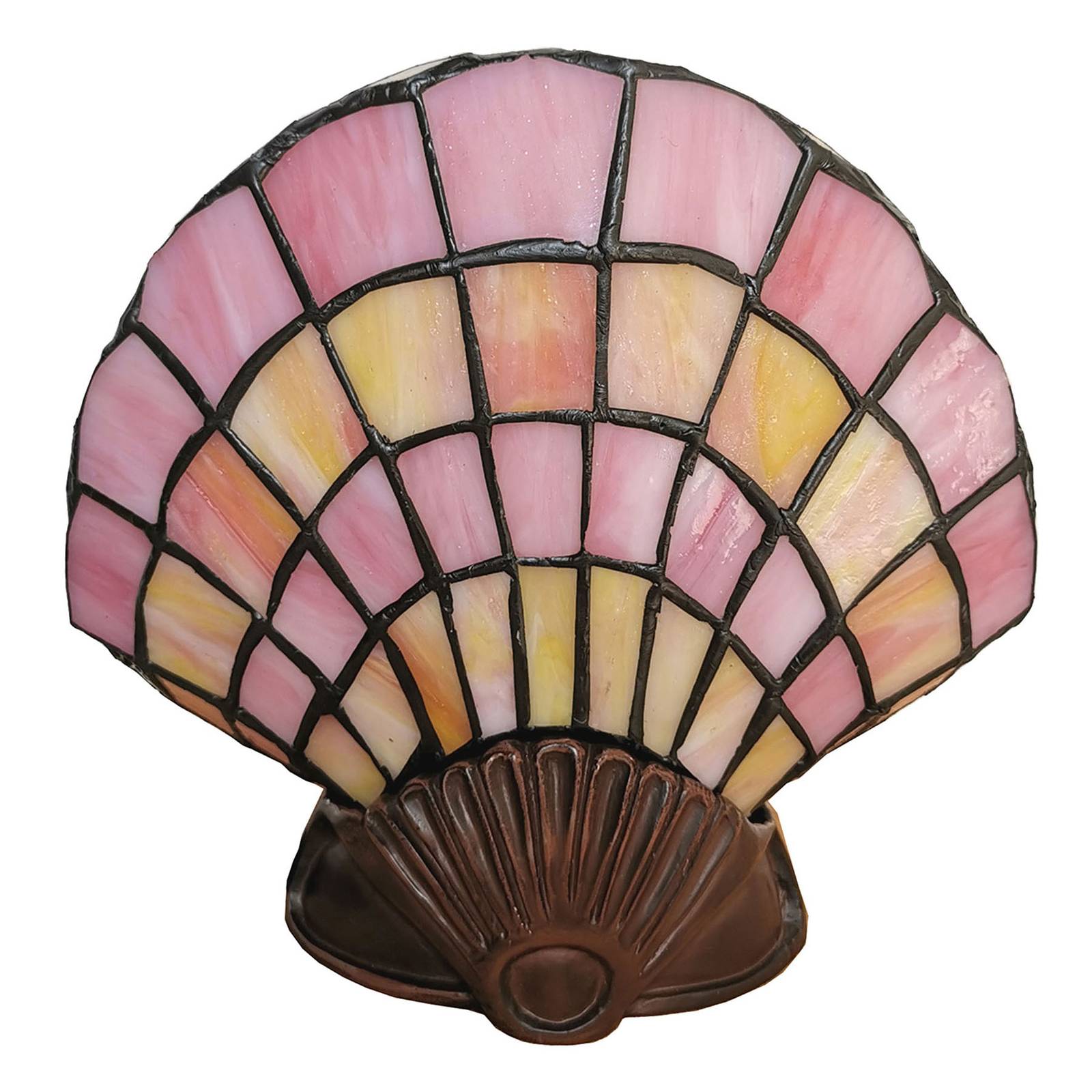 Clayre&Eef Deko-stolní lampa 6000, skleněná mušle styl Tiffany, Obývací pokoj / jídelna, polyresin, sklo, E14, 25W, L: 25 cm, K: 20cm