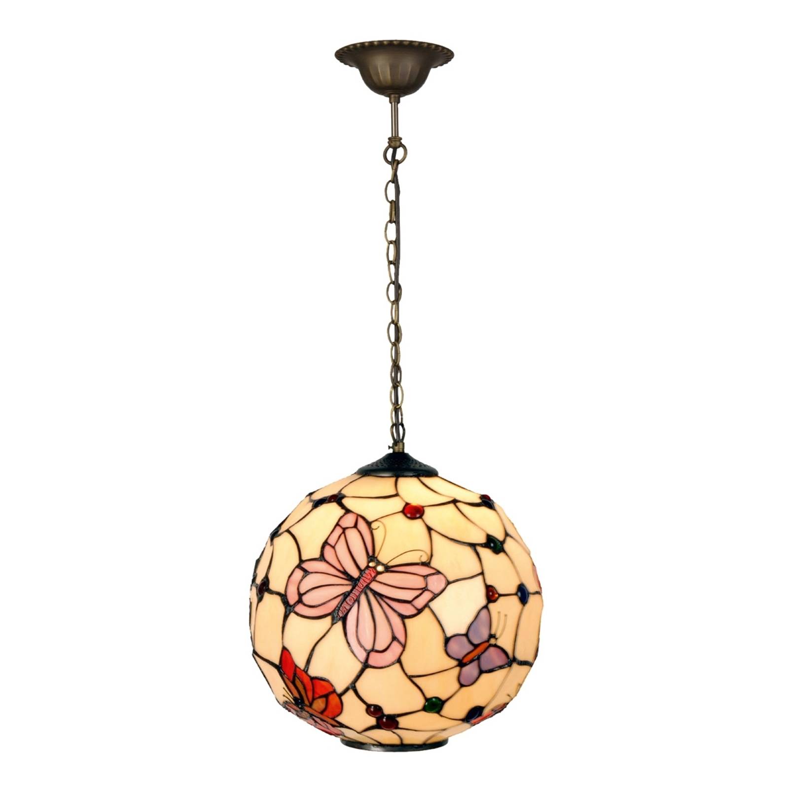 Clayre&Eef Závěsné světlo Rosy Butterfly v Tiffany stylu, Obývací pokoj / jídelna, sklo, kov, E27, 60W, K: 30cm