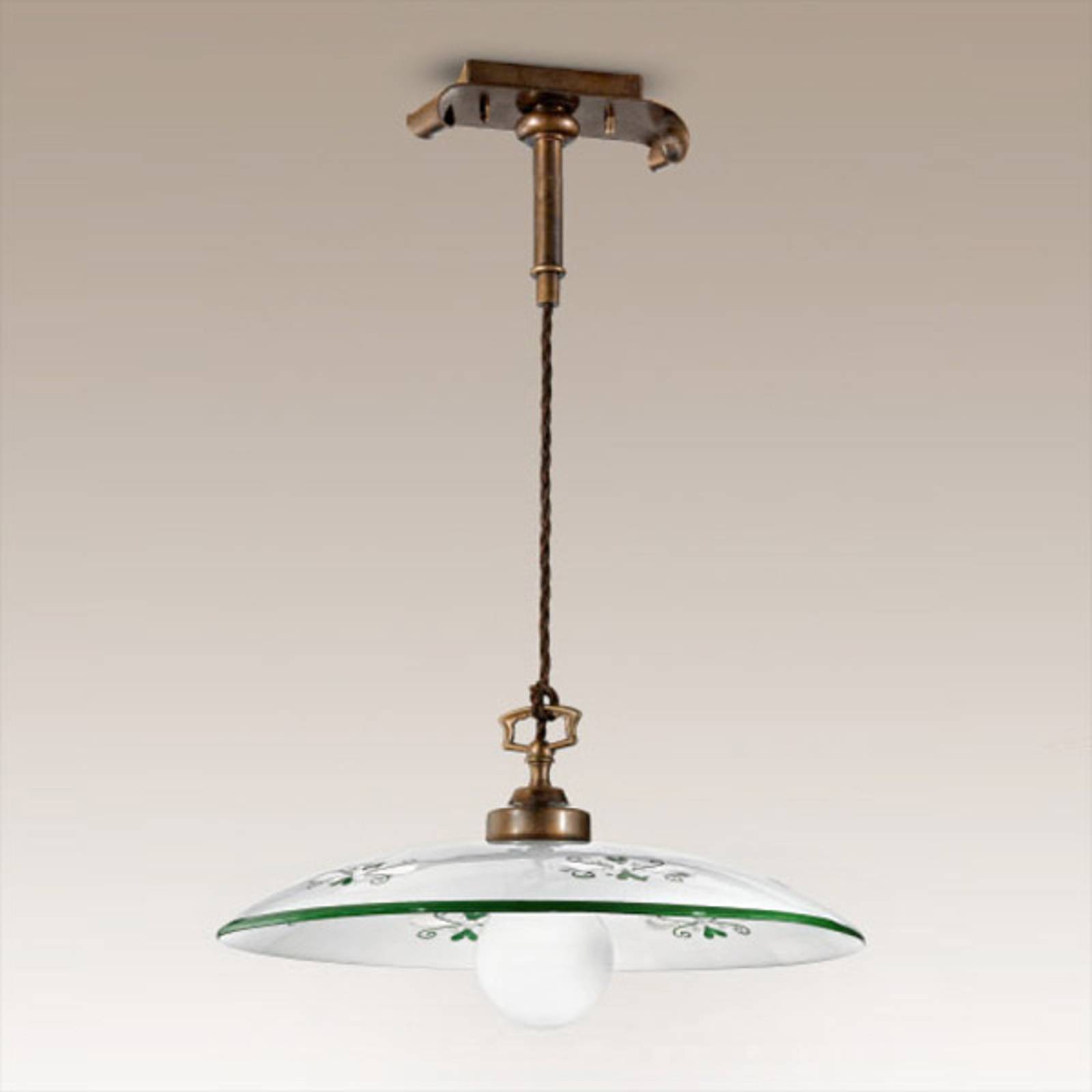 Cremasco Závěsné světlo Bassano, 1zdrojové, detaily zelené, Obývací pokoj / jídelna, keramika, mosaz, E27, 100W