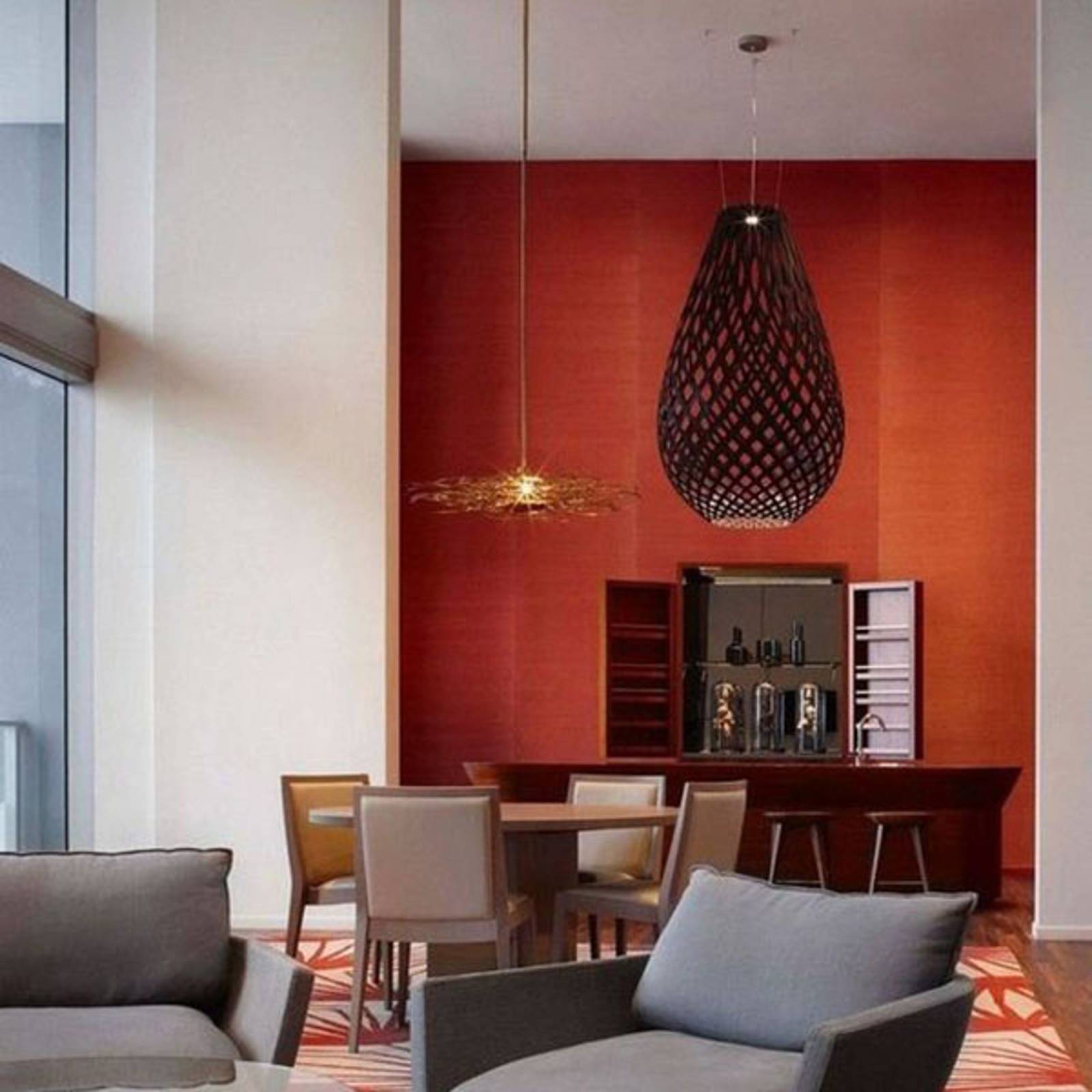 david trubridge Koura závěsná lampa 50 cm bambusově červená, Obývací pokoj / jídelna, Bambus, E27, 60W, K: 50cm
