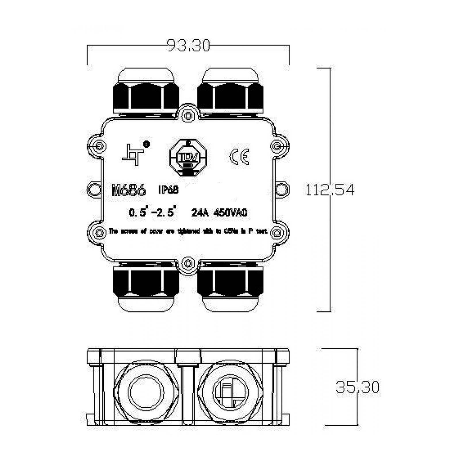 Deko-Light Outdoor multi 4x rozvaděč pro 2-4 Kabely, P: 11.25 cm, L: 9.33 cm, K: 3.53cm
