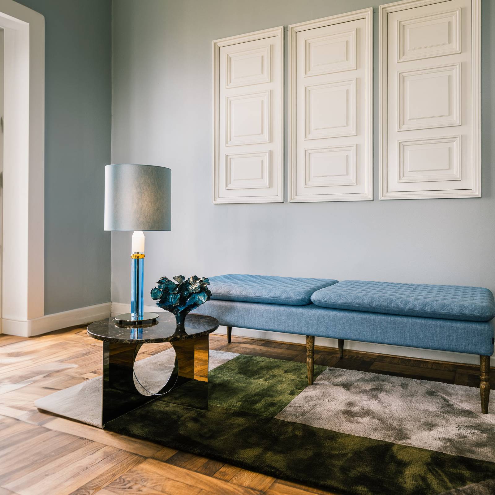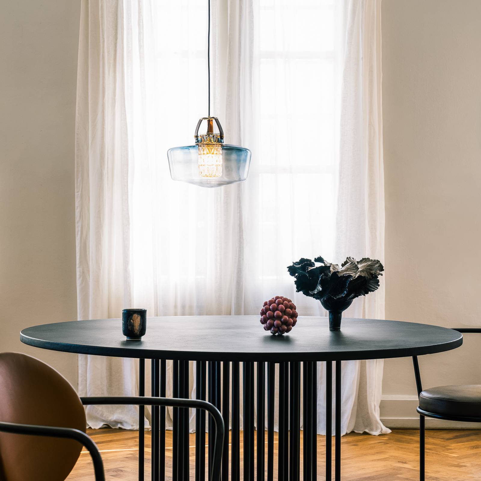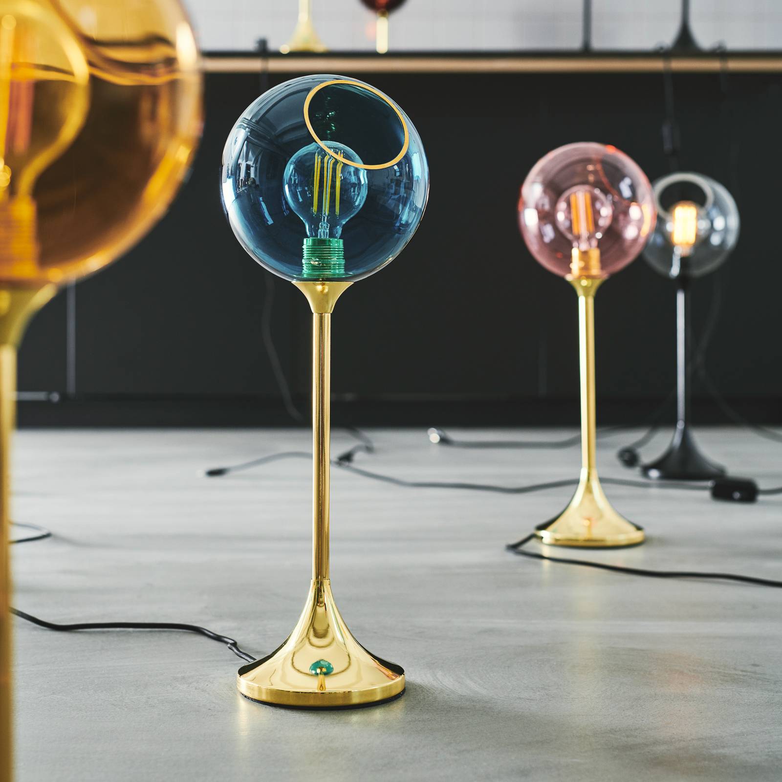 DESIGN BY US Stolní lampa Ballroom, modrá, sklo, foukané do úst, stmívatelná, Obývací pokoj / jídelna, Sklo, železo, E27, 40W, K: 58cm
