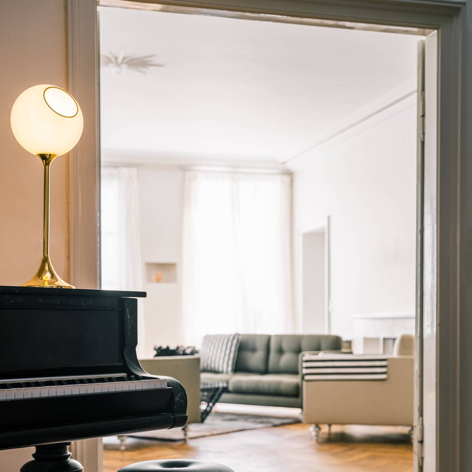 DESIGN BY US Stolní lampa Ballroom, bílá, sklo, foukané do úst, stmívatelná, Obývací pokoj / jídelna, Sklo, železo, E27, 40W, K: 58cm