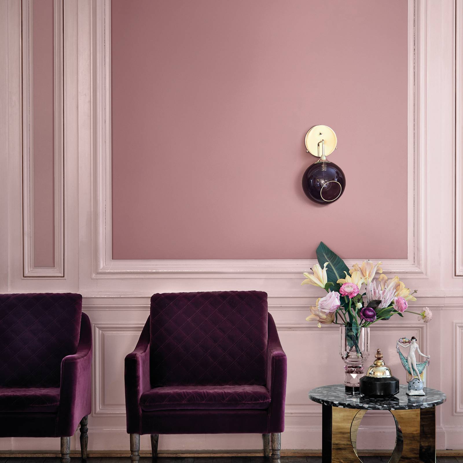 DESIGN BY US Ballroom Short nástěnné svítidlo, fialová barva, sklo, ručně foukané, Obývací pokoj / jídelna, Sklo, železo, E27, 40W, L: 20 cm, K: 37cm