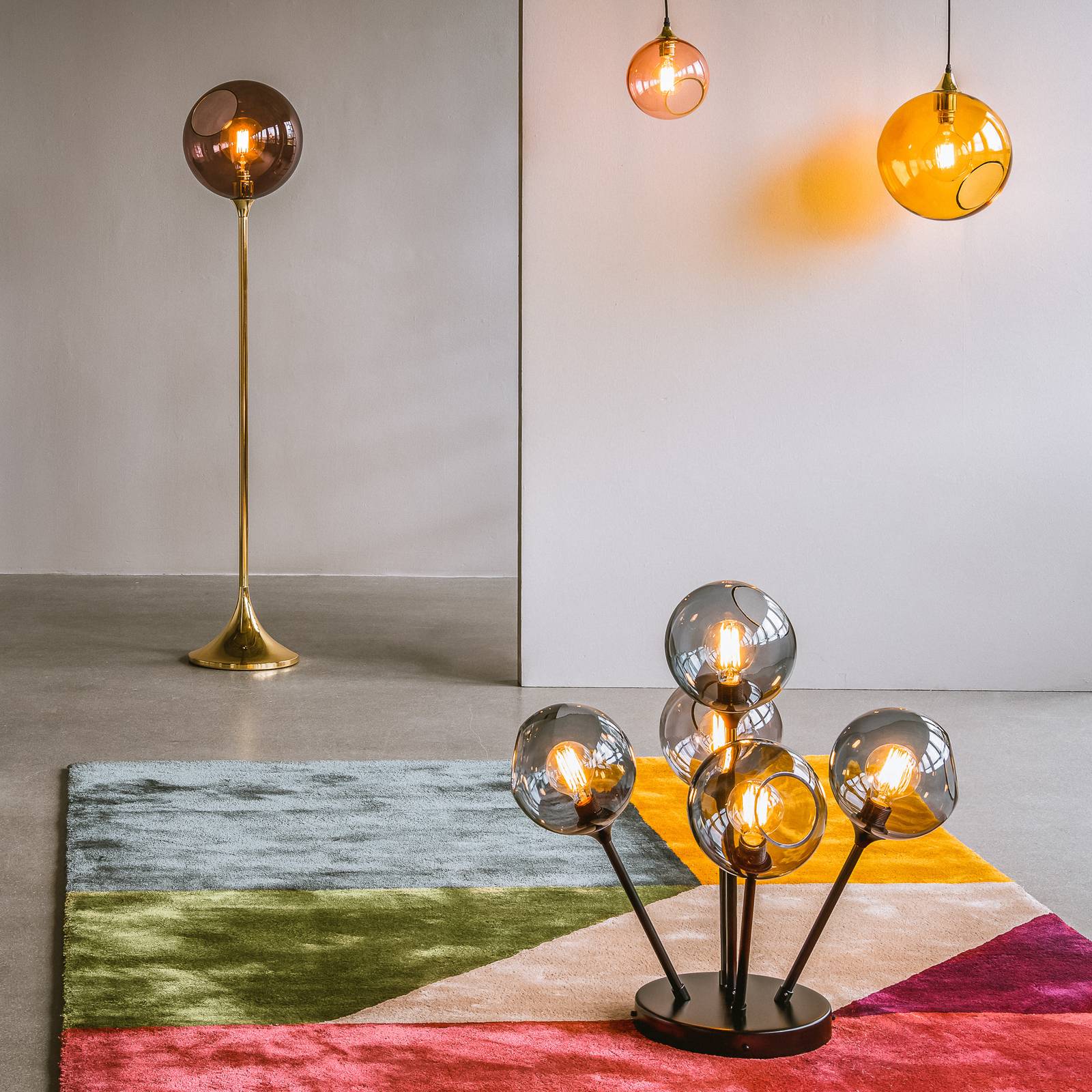 DESIGN BY US Stropní svítidlo Ballroom Molecule, kouřově šedé, sklo, 5 světelných zdrojů, Obývací pokoj / jídelna, Sklo, železo, E27, 40W, K: 66cm
