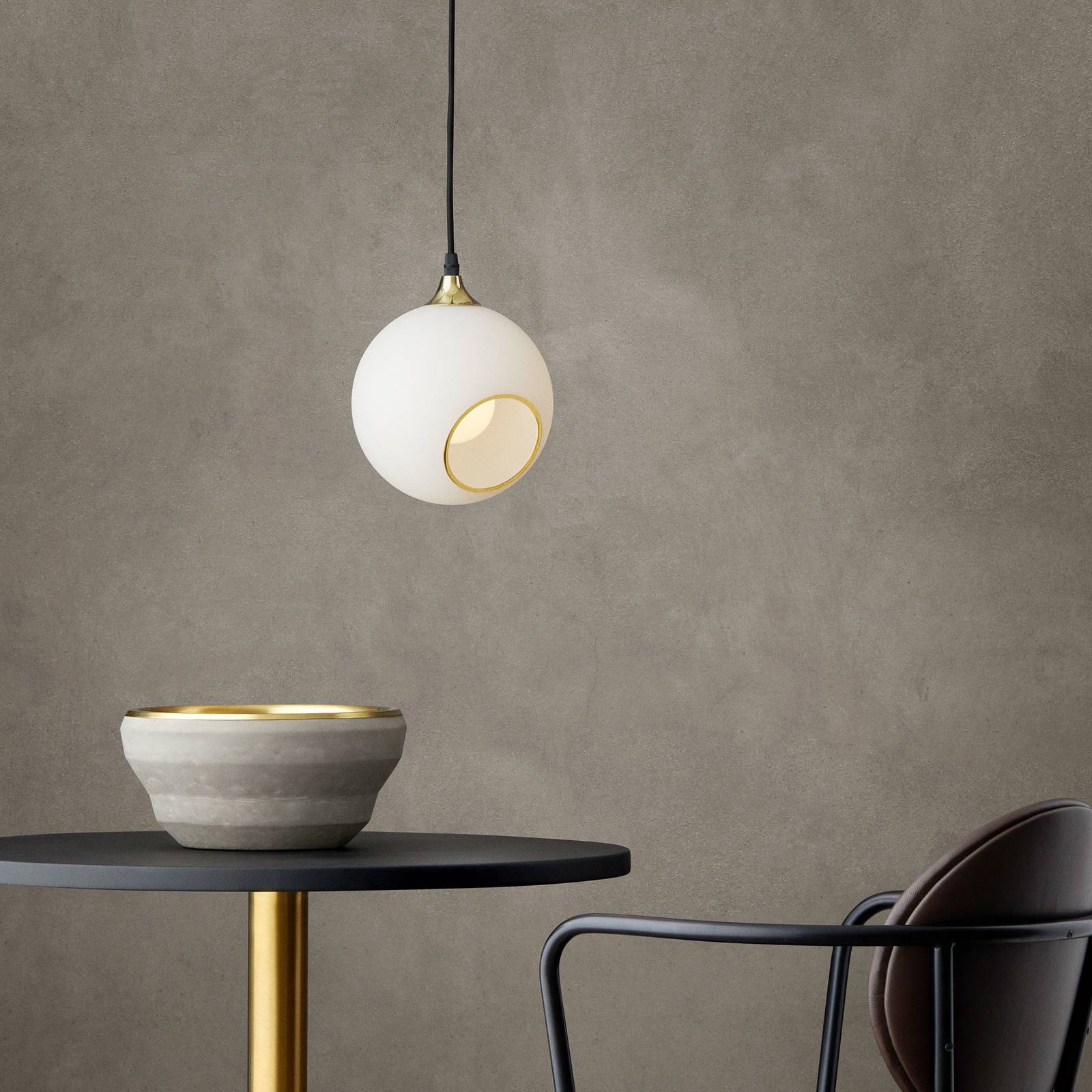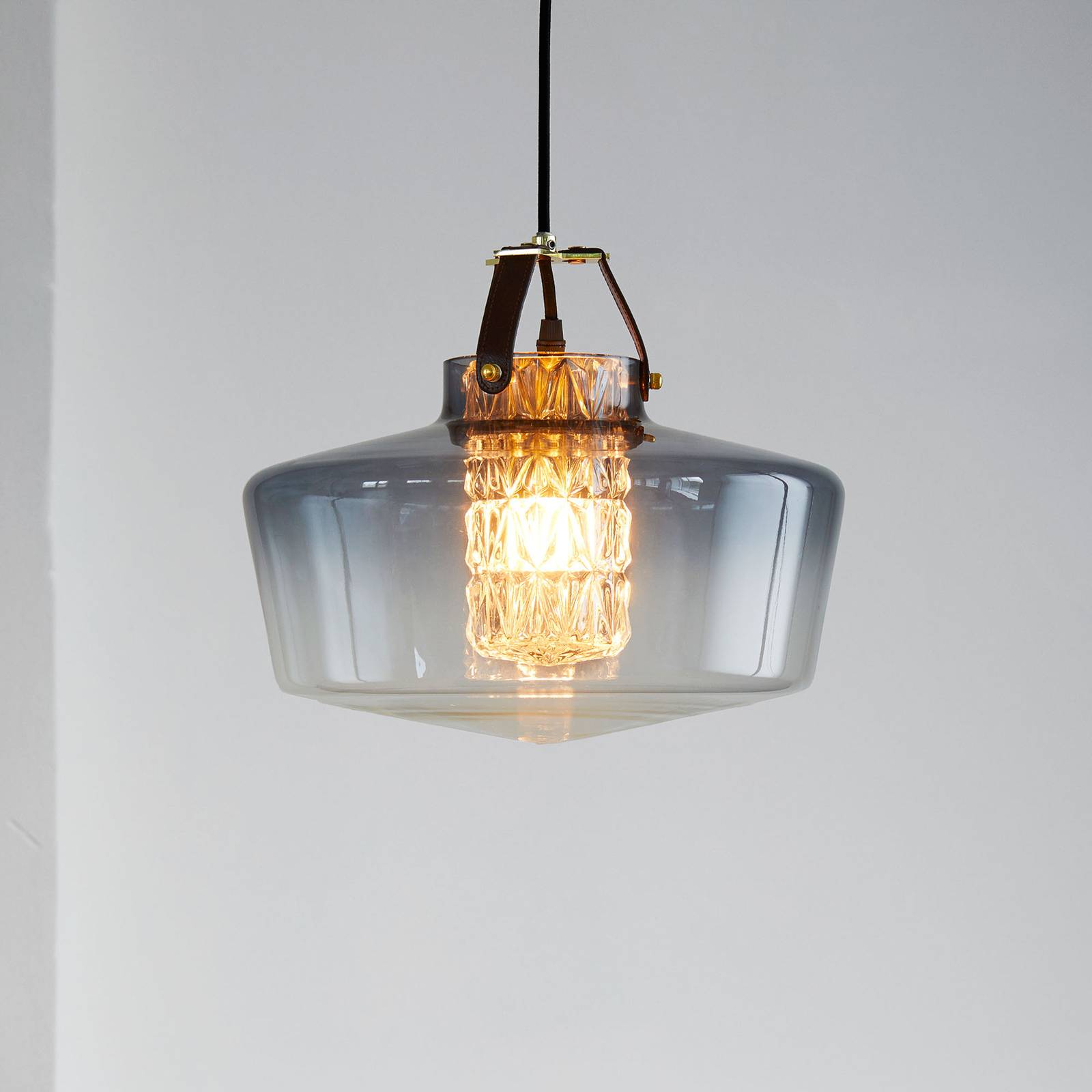 DESIGN BY US Závěsné svítidlo Addicted To Us, kouřově šedá/mosaz/hnědá, Obývací pokoj / jídelna, Sklo, železo, kůže, E27, 40W, K: 27cm