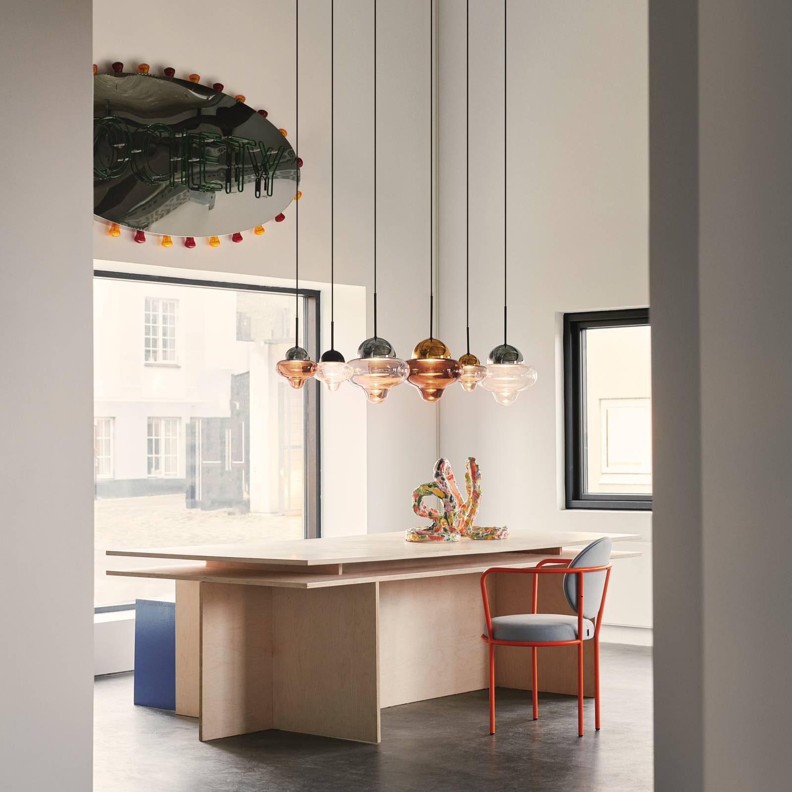 DESIGN BY US Závěsné světlo Ballroom, bílé, Obývací pokoj / jídelna, Sklo, železo, E27, 40W