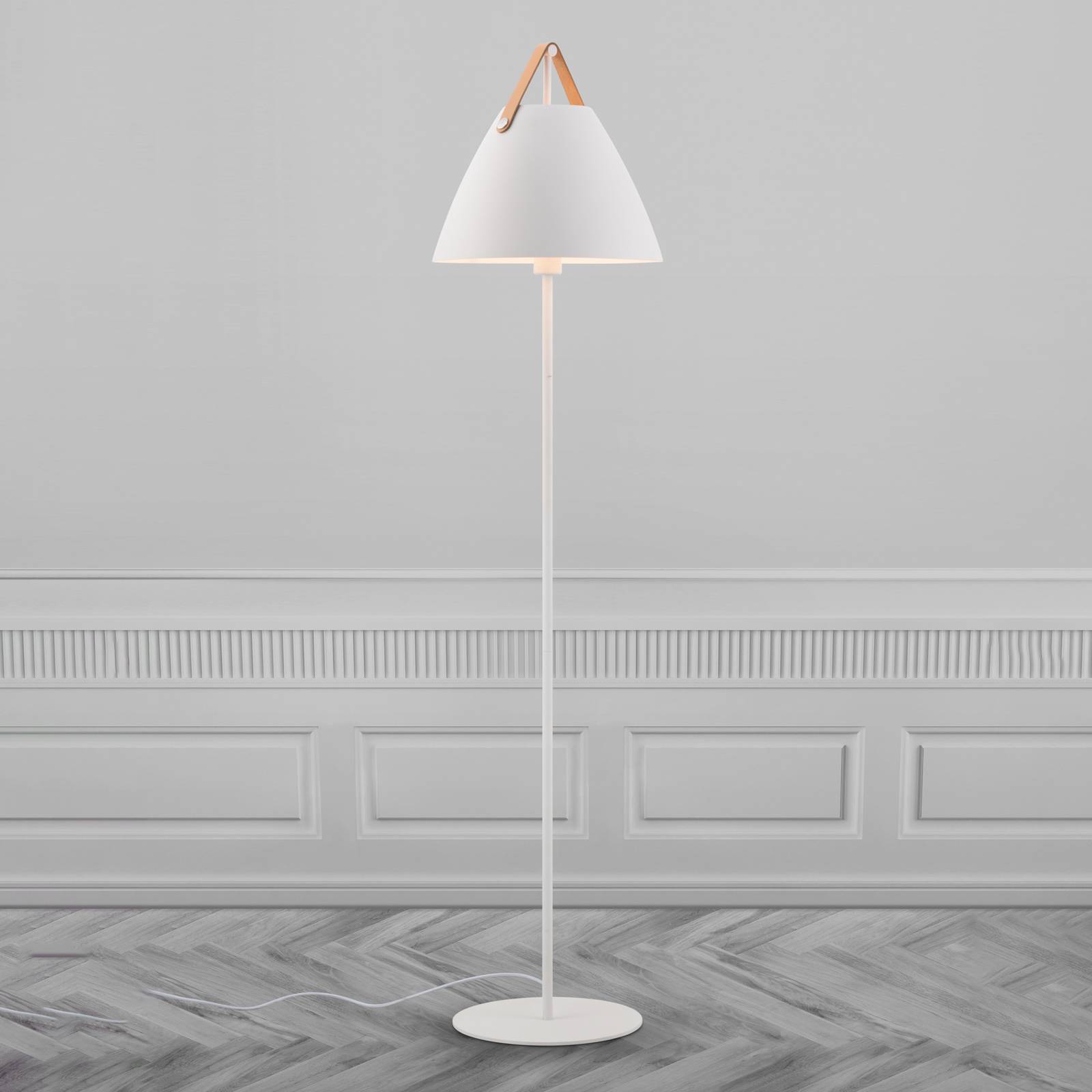 DFTP by Nordlux Stojací lampa Strap kov s koženým popruhem, bílá, Obývací pokoj / jídelna, kov, kůže, E27, 40W, K: 153.7cm