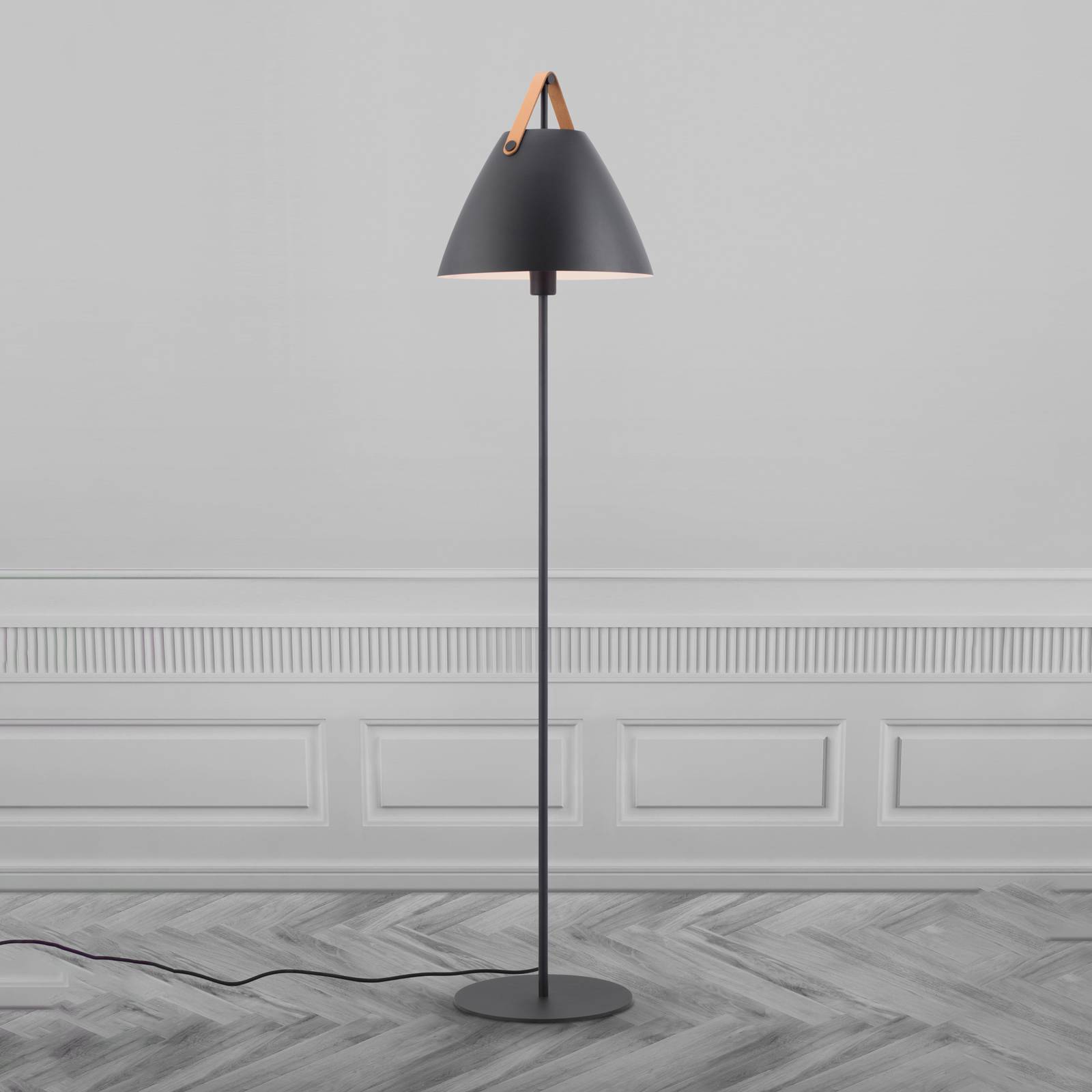 DFTP by Nordlux Stojací lampa Strap z kovu, kožený popruh, černá, Obývací pokoj / jídelna, kov, kůže, E27, 40W, K: 153.7cm