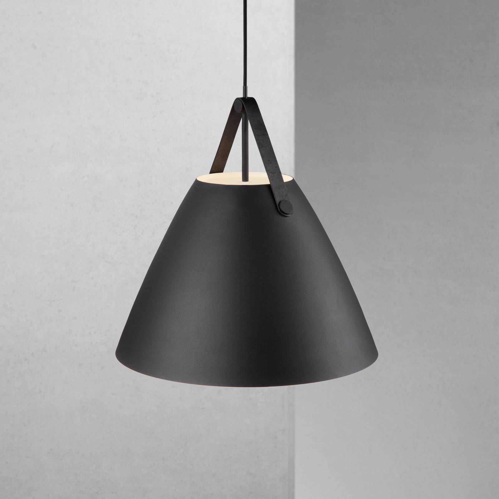 DFTP by Nordlux Závěsné světlo Strap kovové stínidlo Ø 48cm černá, Obývací pokoj / jídelna, kov, kůže, E27, 40W, K: 48.8cm