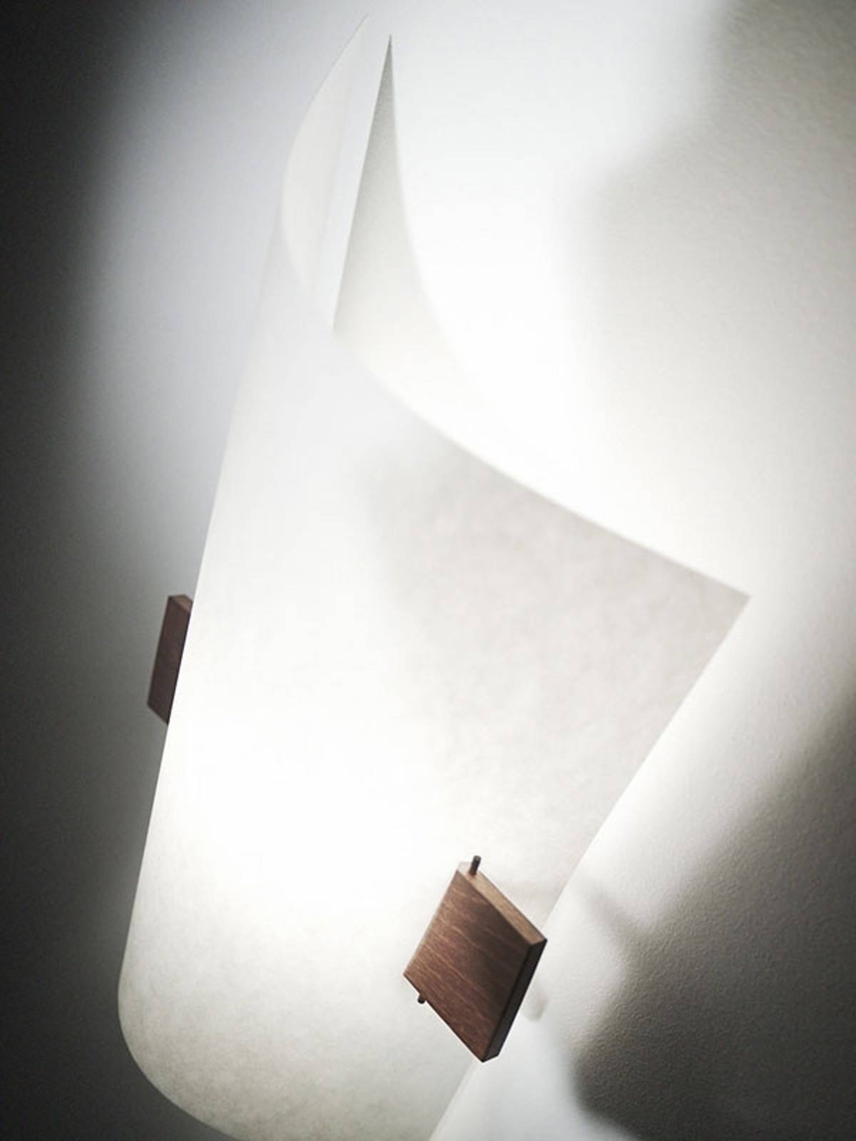 Domus Designové nástěnné světlo PLAN B s tmavým dřevem, Obývací pokoj / jídelna, dřevo, stínidlo na lampu lunopal, E27, 100W, L: 24 cm, K: 44cm